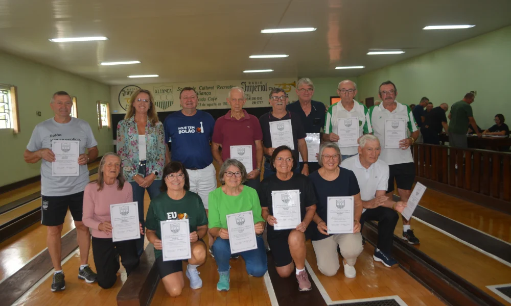 Picada Café – Agradecer a quem fez história num dos clubes mais antigos e porque não, na cidade. Foi assim na manhã de domingo, 12, quando a Sociedade Aliança fez uma homenagem especial aos homens e mulheres que em 2017 colocaram o nome do clube e da cidade no seleto grupo de campeões do Campeonato Brasileiro de Bolão da Melhor Idade. E o inédito título veio no masculino e feminino, jogando em casa. Um a um os campeões receberam um diploma em forma de agradecimento e gratidão. Em um dos momentos mais marcantes a viúva do capitão da equipe, Remídio Kintschner, dona Sibila Kintschner, recebeu a homenagem. Remídio faleceu anos após dar o inédito título a Sociedade Aliança. O presidente João Ricardo Schaab, o “Tampinha”, explica a importância do título de campeão brasileiro. “O que essas pessoas fizeram foi algo que foi eternizado. Os títulos que esses homens e mulheres foi, é e sempre será um orgulho para o clube e seus associados”, frisou. Os títulos de 2017, afirma “Tampinha”, devem inspirar. “O bolão é um esporte coletivo que ultrapassa fronteiras. A dedicação a ele levou nossos times a esse importante título nacional”, declarou. Confira quem são os campeões brasileiros de 2017.