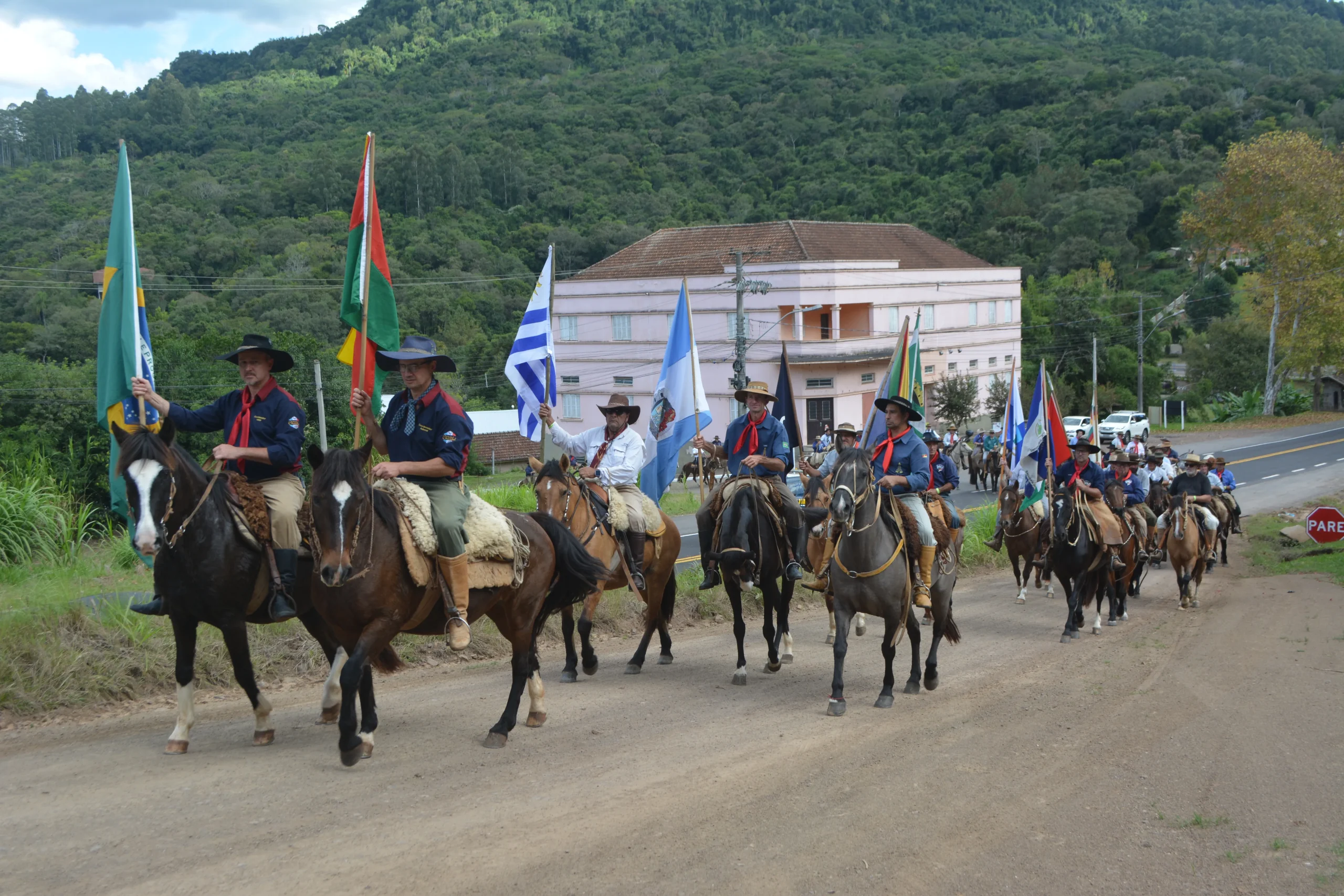 A Cavalgada da Serra terá percurso de 109km. Com saída nesta quinta-feira, os amantes da cultura tradicionalista já estão em Nova Petrópolis de onde partem hoje para Gramado, neste sábado até a cidade de Canela e domingo, dia 18, encerram na Barragem do Salto, em São Chico. Foram muitos os momentos emocionantes na abertura do evento que teve a presença do prefeito Daniel Rückert, vice Max Mallmann, vereador de Nova Petrópolis, Marcos Narciso JR., padre Milton Zilles, deputado Pompeu de Mattos, dentre outros. Além da homenagem e agradecimento aos participantes, teve homenagem as lideranças que já partiram e deixaram seu legado. “Isso deve servir de estímulo para que as novas gerações venham, participem e que possam fazer parte e difundir essa cultura”, afirma o coordenador Rodrigo Narciso Molle. Esse ano um grande exemplo provém da Família Mewius, de Picada Café. Três gerações participam do movimento e pretendem fazer todo o trajeto. “O pai e eu vamos na equipe de apoio e meu filho Marlon, de 13 anos, fará toda a cavalgada”, destacou orgulhoso o pai, Marcos Henrique. Esse ano a cavalgada deve ter recorde de participantes. A coordenação geral acredita que cerca de 400 cavalarianos devam concluir a etapa principal do final de semana.