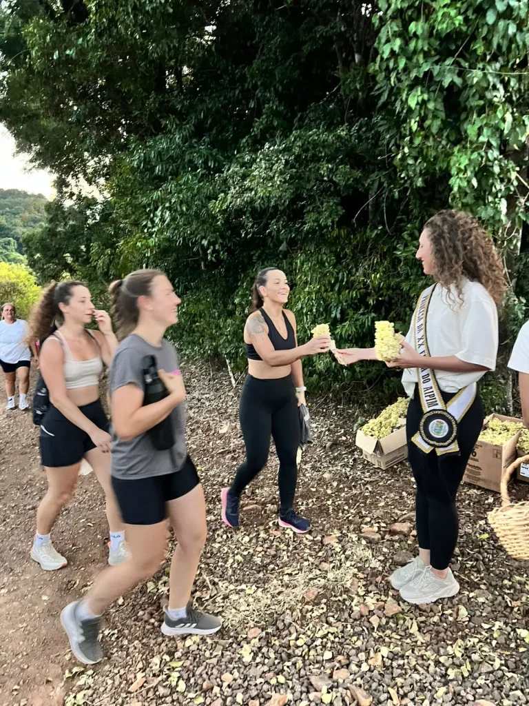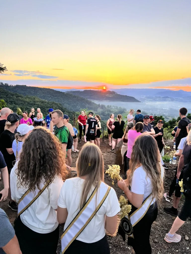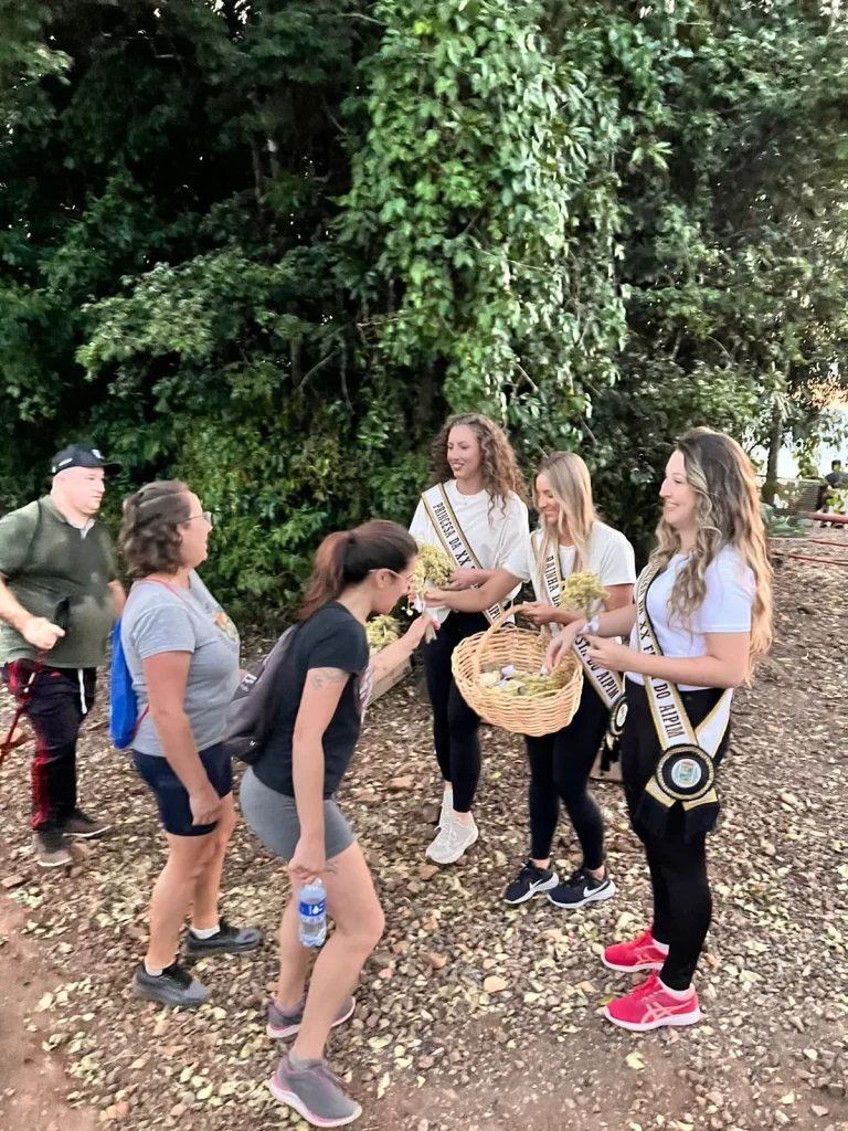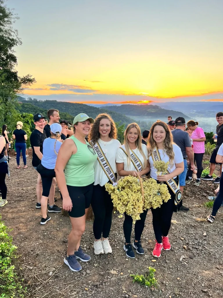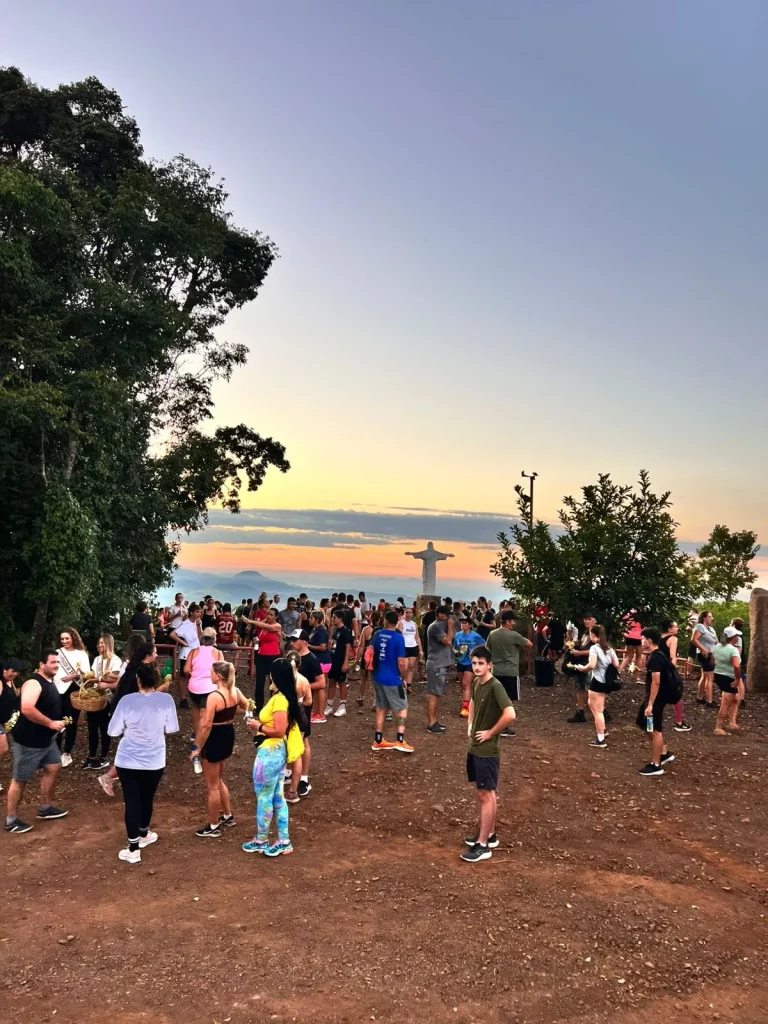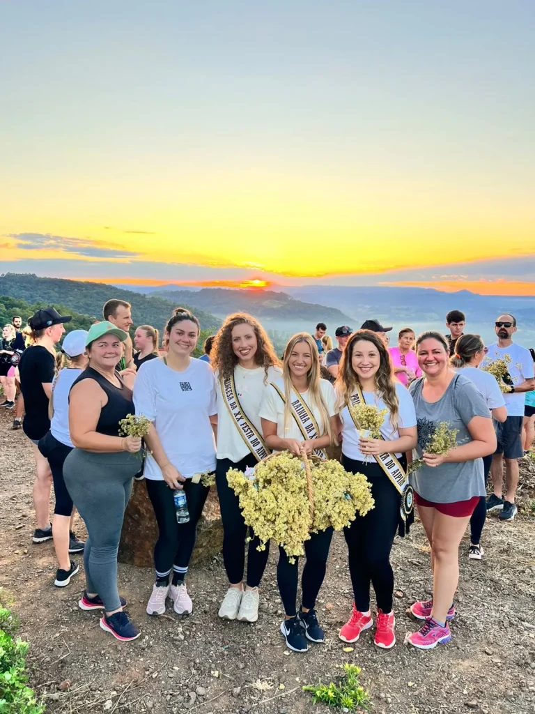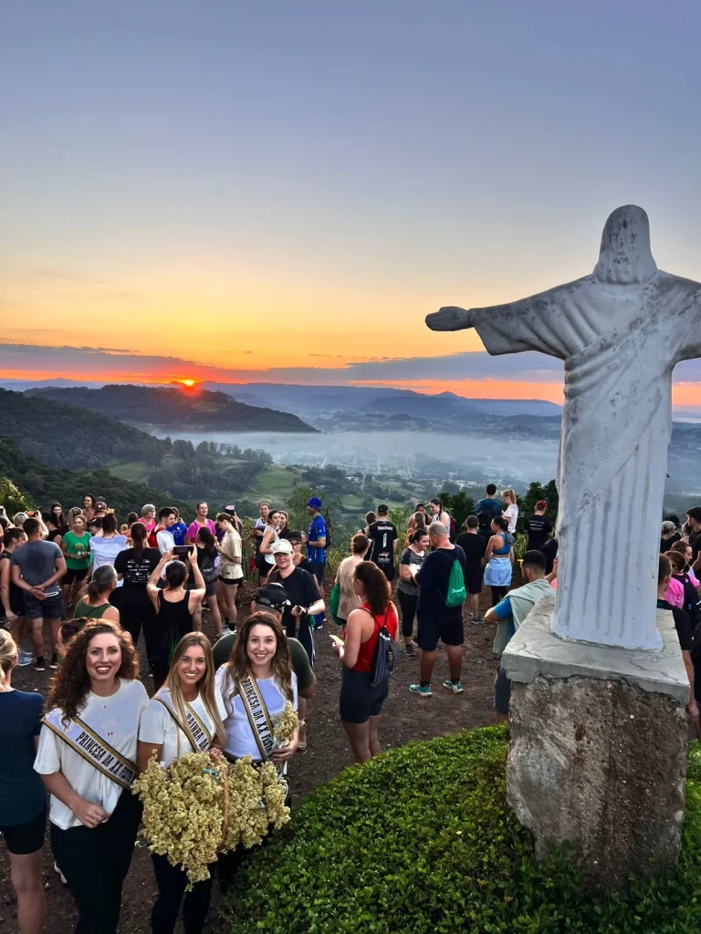 A concentração ocorreu nas primeiras horas do dia, em frente à Prefeitura, de onde os participantes seguiram pelo trajeto de aproximadamente 9 quilômetros, em meio às belas paisagens do interior do município. O ponto alto foi o amanhecer, acompanhado durante a caminhada, proporcionando um momento especial de reflexão e conexão com a natureza. No Morro do Cristo, os participantes puderam prestigiar o lindo nascer do sol, tornando a experiência ainda mais marcante.