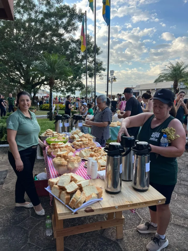 Na volta, os participantes também puderam prestigiar a Feira Colonial, realizada em frente à Prefeitura, aproveitando para adquirir produtos locais e fortalecer os produtores do município, encerrando a manhã com integração e valorização da comunidade local.
