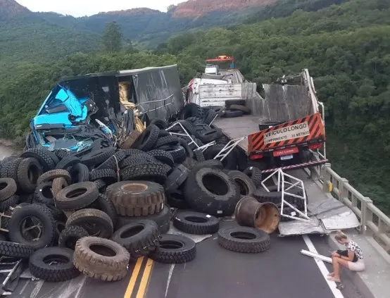 Colisão entre caminhões na ponte do Rio das Antas deixa um morto e interdita a ERS-122