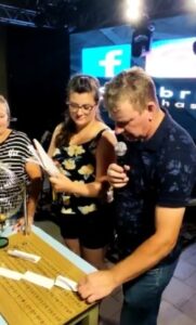 Imagem histórica, de 2023, o saudoso Guido fazendo sorteio da moto do Planeta WalachaiPLANETA