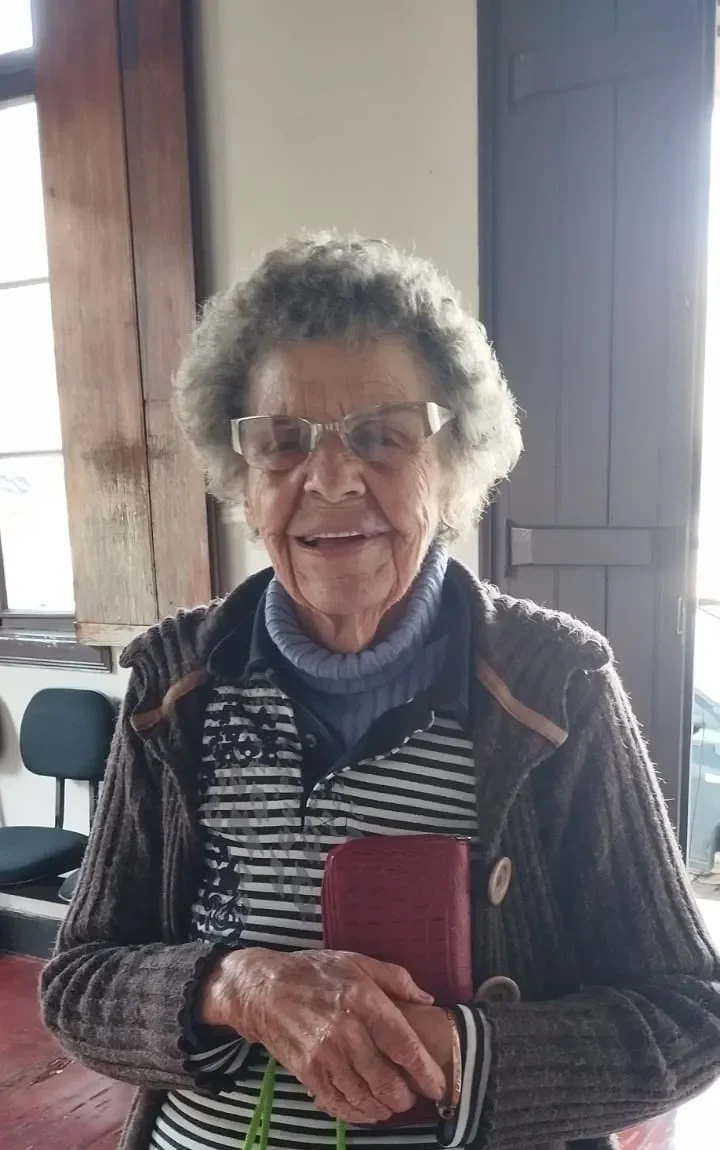 Essa é a dona Fleckinha, que ganhou uma assinatura do Diário de presente e veio até o jornal nos visitar e retirar. A dona Leony Fleck tem 86 anos, quase não toma remédio algum e tem loja (que leva seu nome) há 37 anos aqui na São Miguel. Mas, apesar de serem motivos fortes, não é este o motivo da foto dela estar aqui. Sabe qual?