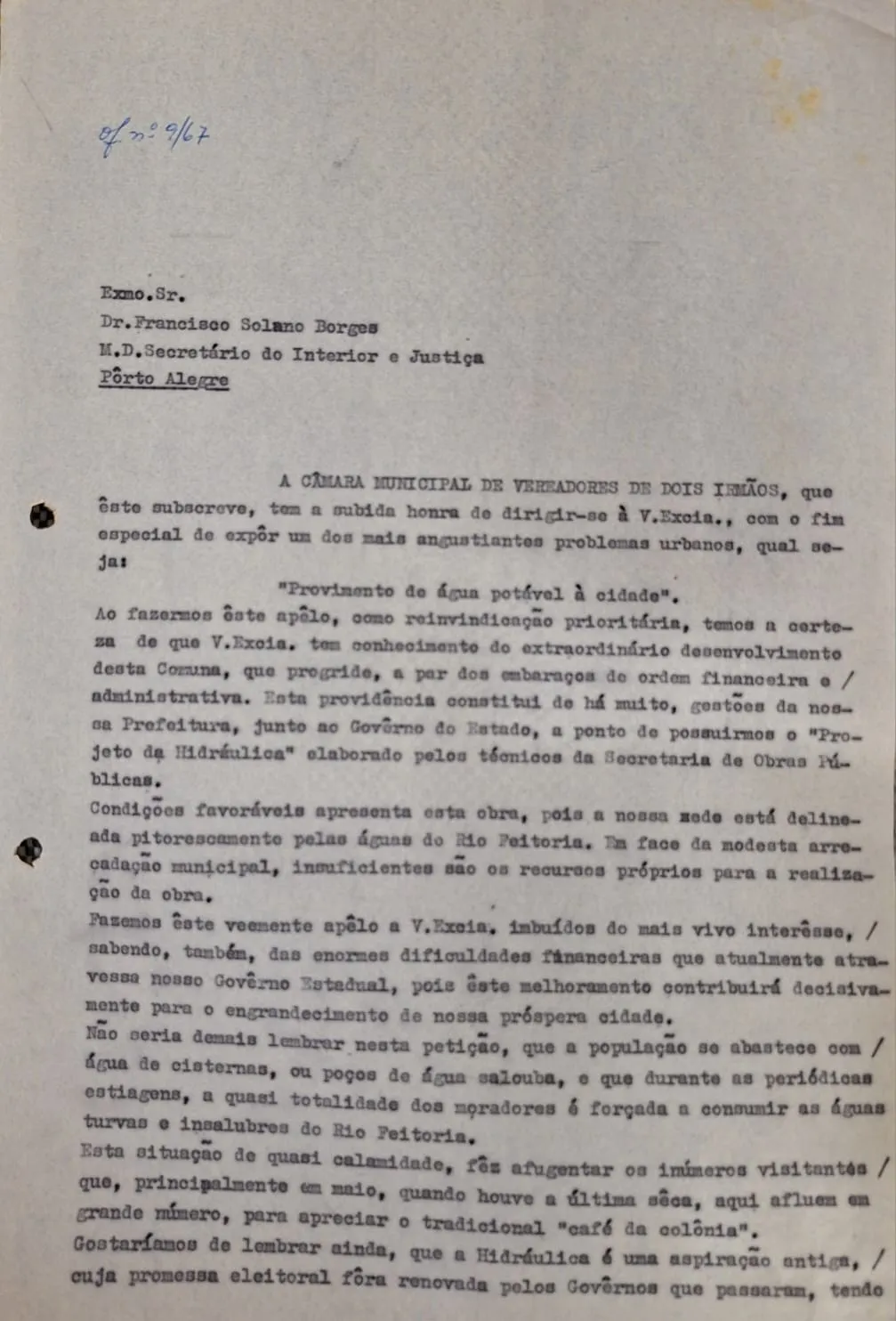 Documentos escritos pela Câmara em 1967 mostra a realidade de quase 60 anos atrás