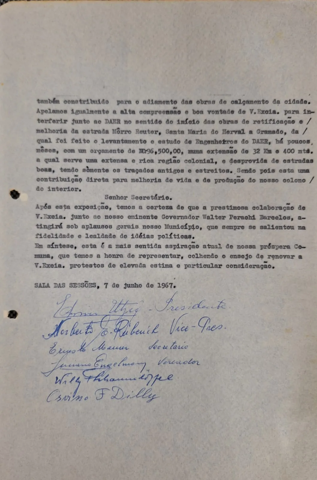 Pela leitura do documento, encaminhado pelos edis ao secretário do Interior e Justiça do RS da época, a gente tem uma ideia da realidade daquela época.