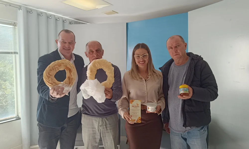 Ivoti – Na manhã ensolarada desta quarta-feira, o Prefeito Valdir Ludwig, acompanhado da Secretária de Turismo Raiama Trenkel e de Leonir Krug (Niu), presidente da COOAPI, estiveram na sede do Diário em Ivoti para divulgar e convidar a comunidade para a 18ª Feira do Mel, Rosca e Nata, que acontece do dia 23 de maio até dia 1º de junho. Com atrações musicais, gastronomia e bebidas inspiradas no tema da feira, o evento deste ano tem como expectativa de público 40 mil pessoas.