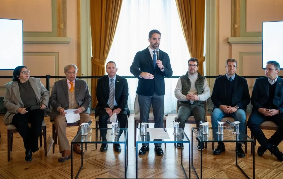 Com o objetivo de reunir subsídios e articular estratégias diante do anúncio das tarifas de 50% anunciadas pelos Estados Unidos (EUA) contra produtos brasileiros, o governo do Estado promoveu na sexta-feira (18/7) uma reunião com representantes da indústria gaúcha, da diplomacia norte-americana e de entidades empresariais. O encontro foi conduzido pelo governador Eduardo Leite no Salão Alberto Pasqualini, no Palácio Piratini, com a participação do cônsul-geral dos EUA em Porto Alegre, Jason Green.
