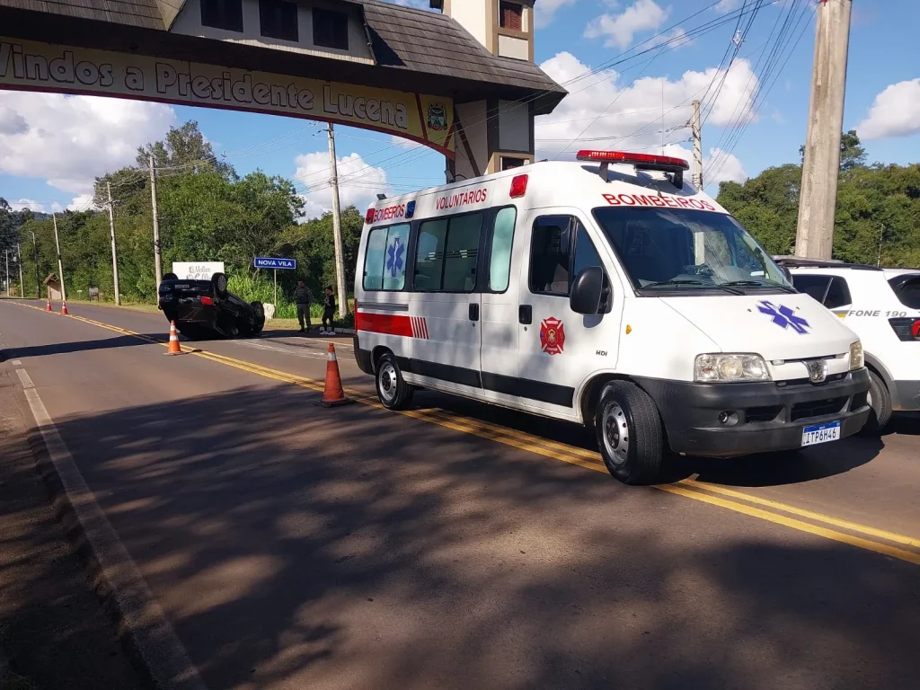 Um Volkswagen Gol se envolveu em um capotamento na tarde desta quinta-feira (9), por volta das 15h, na Avenida Presidente Lucena (VRS-865), na localidade de Nova Vila, entre Ivoti e Presidente Lucena.