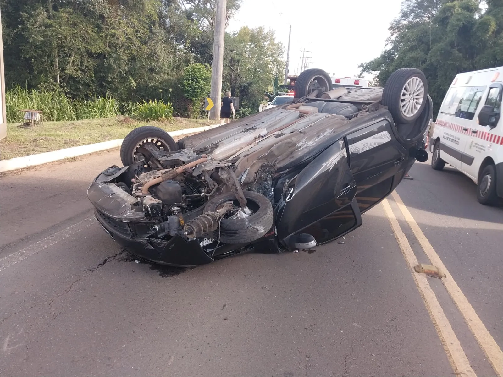 Um Volkswagen Gol se envolveu em um capotamento na tarde desta quinta-feira (9), por volta das 15h, na Avenida Presidente Lucena (VRS-865), na localidade de Nova Vila, entre Ivoti e Presidente Lucena.