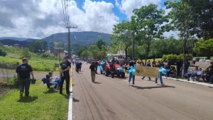 Alunos param obra de asfalto com atitude inesperada em Santa Maria do Herval