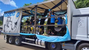 Ônibus de excursão que pegou fogo na BR-116, em Dois Irmãos, ia para Camping