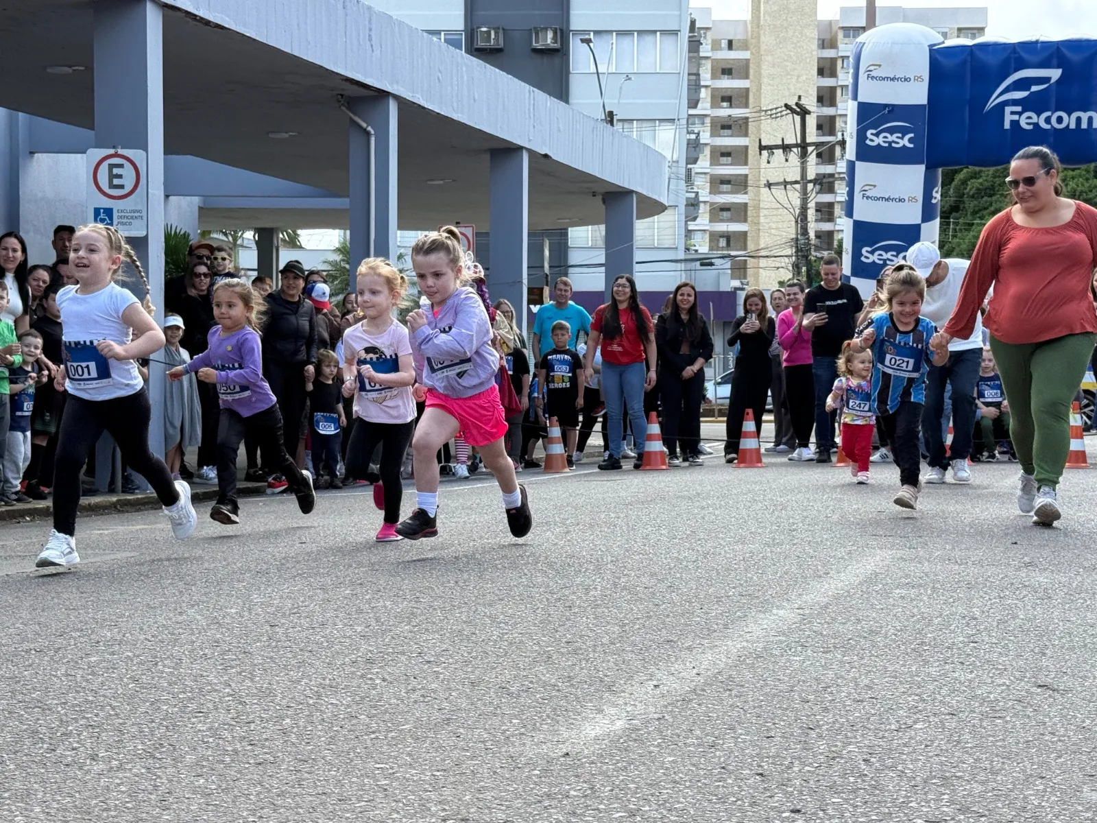 As provas foram divididas por faixa etária: 50 metros para crianças de 3 e 4 anos; 75 metros para 5 e 6 anos; 100 metros para 7 e 8 anos; e 150 metros para 9 a 11 anos. Além das corridas, a manhã contou com brinquedos infláveis e pintura de rosto, garantindo a diversão da garotada do início ao fim.