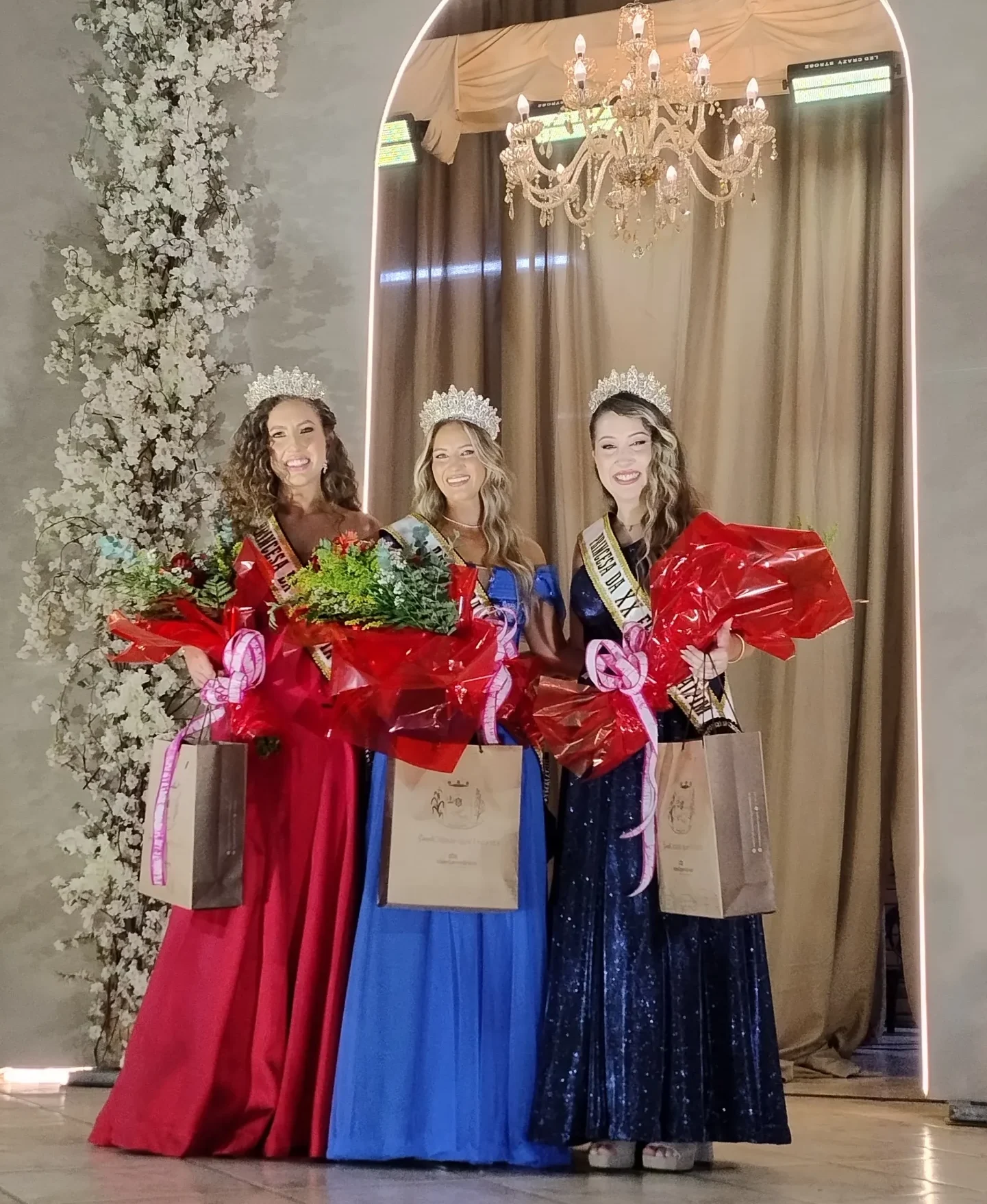 São José do Hortêncio – Na noite de sexta-feira (28), a comunidade hortenciense viveu uma noite de emoção, tradição e forte participação popular na escolha da corte da 20ª Festa Municipal do Aipim, que ocorrerá em 2026. Após desfiles, apresentações e avaliação técnica, Raquel Beatriz Schafer foi eleita rainha, enquanto Júlia Laís Follmer e Vitória Mari de Freitas Engeroff assumiram os títulos de princesas. O evento reuniu autoridades, famílias, soberanas de outros municípios e nove candidatas que disputaram a coroa.