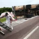 Caminhão baú de Lindolfo Collor tomba e freeway fica bloqueada