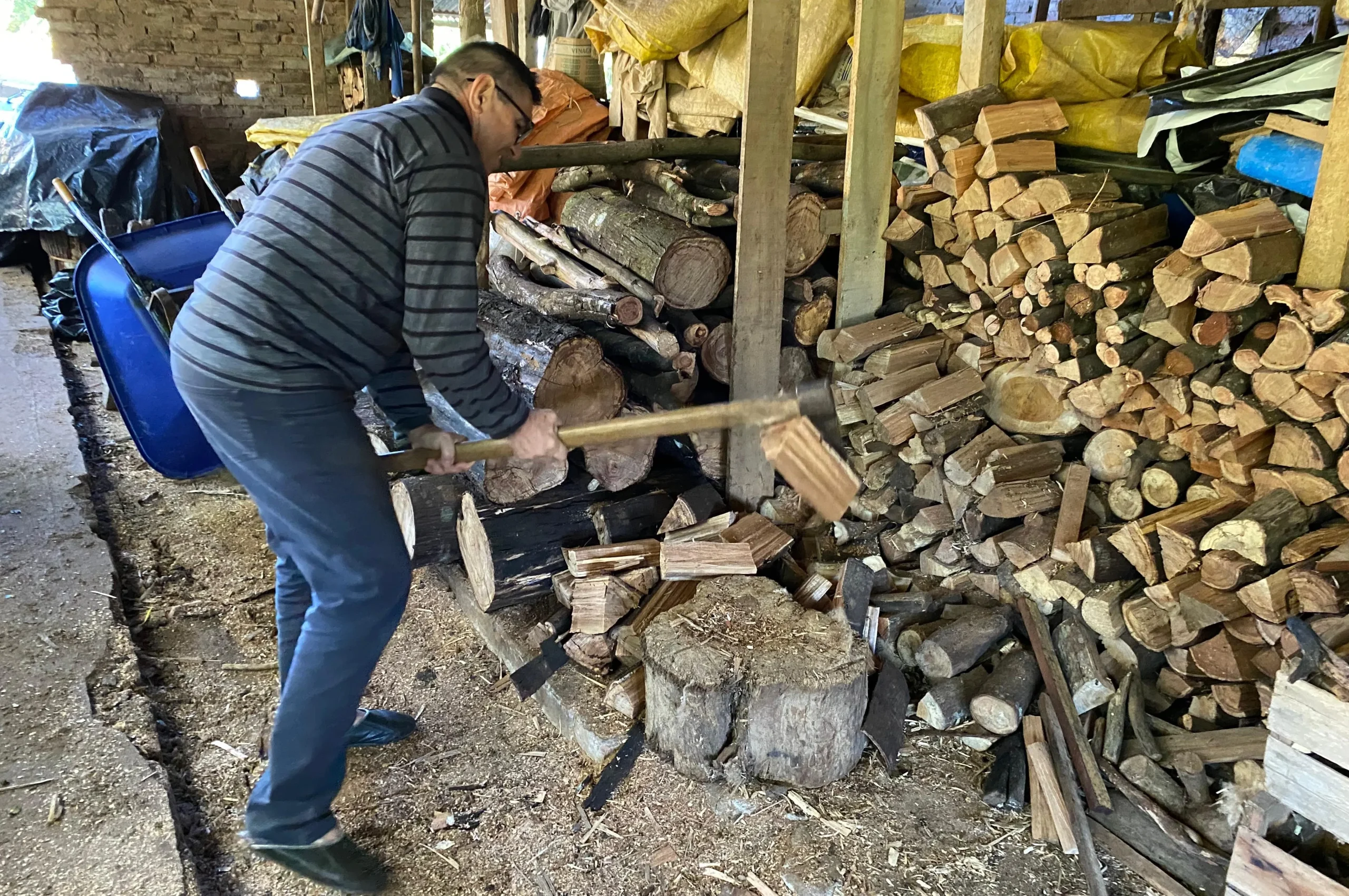 Uma das atividades diárias é cortar a lenha para aquecer a casa