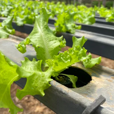 As alfaces recebem os nutrientes através do sistema de tubulação