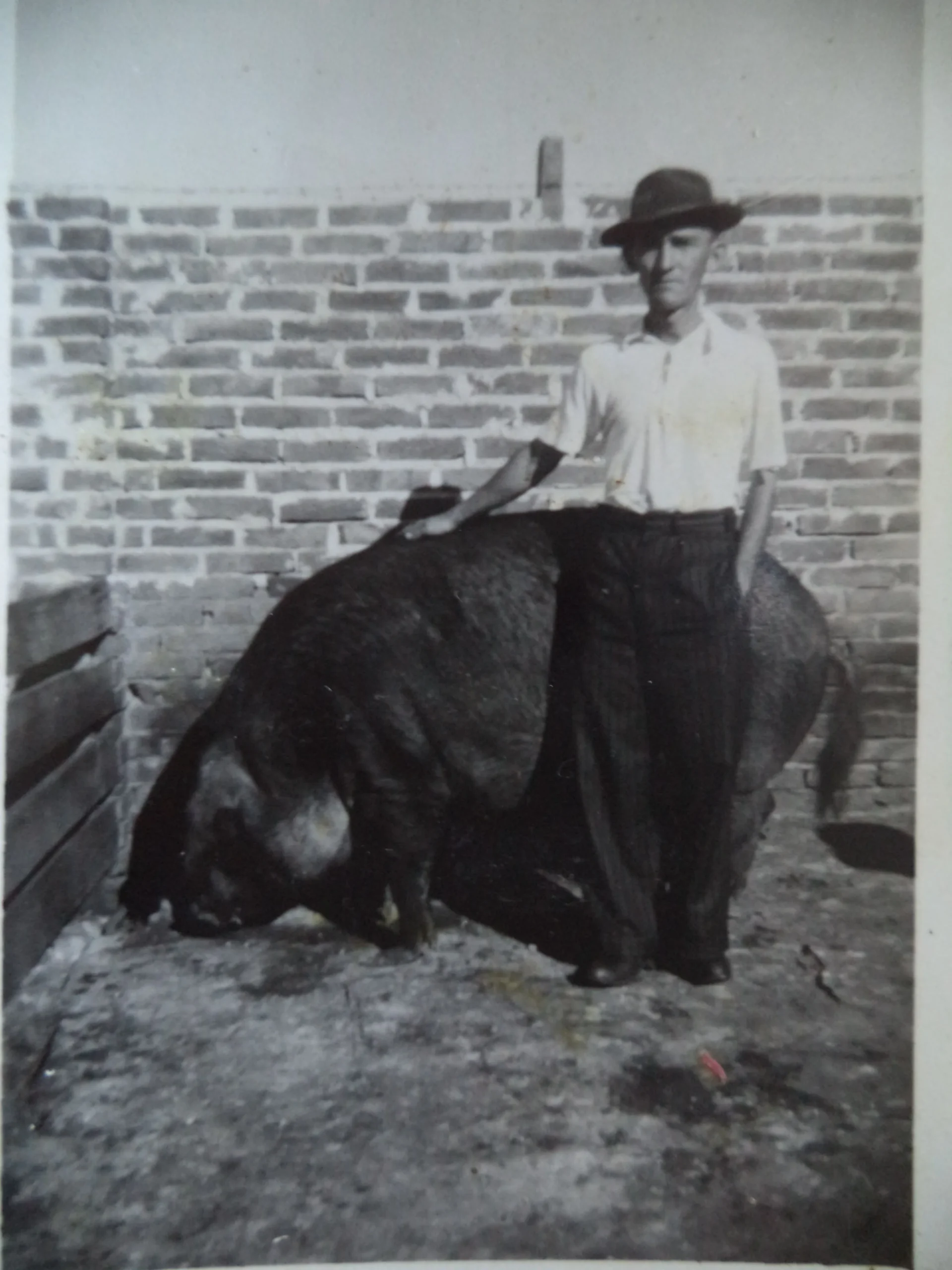Prof.Edvino Utzig e o seu porco gordo nos anos 70 em Picada São Paulo (o patriarca da família Utzig que hoje tem frigorífico de aves)