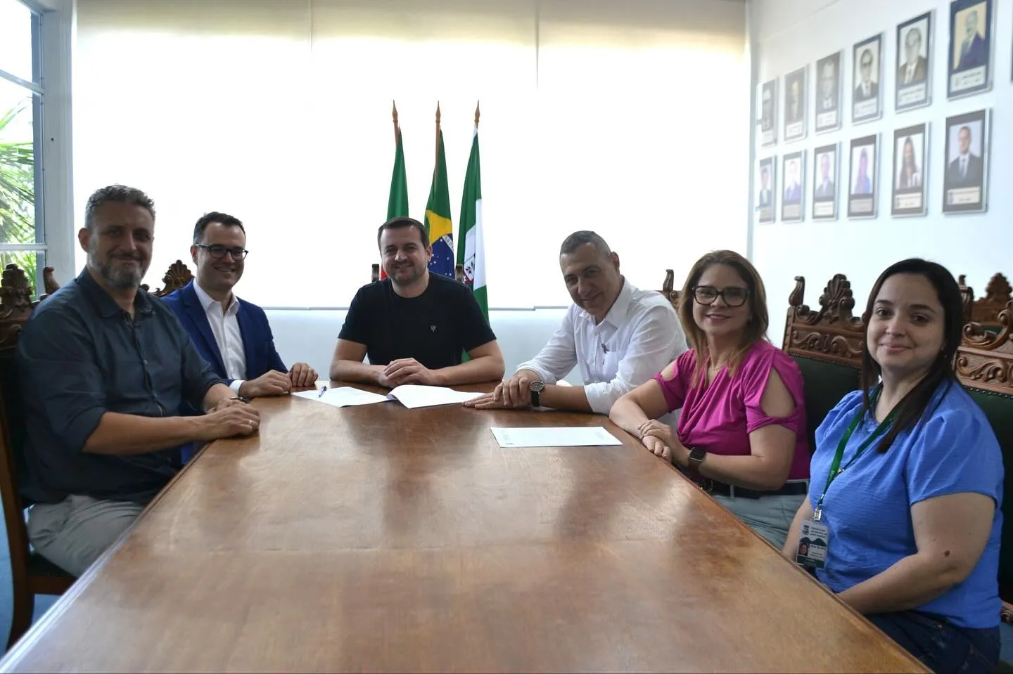 Dois Irmãos – Na tarde desta sexta-feira (14/11), o prefeito Jerri Meneghetti assinou o termo de colaboração com o Doutor Leandro Minozzo para integrar o programa “60 Minutos para o Cérebro” à rede de atenção primária em saúde. A iniciativa fortalecerá ações de diagnóstico precoce e cuidado integral em Alzheimer, além de promover a prevenção da saúde cognitiva. O projeto também inclui a capacitação de profissionais da atenção básica e atividades educativas junto à comunidade. As consultas serão realizadas de forma intercalada nas UBSs, atendendo pacientes a partir de 55 anos.