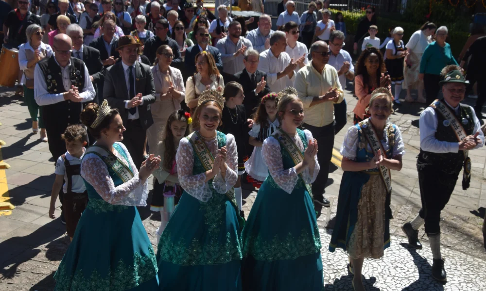 O encontro das três comunidades aconteceu em frente à Sociedade Santa Cecília, onde foi realizada a cerimônia oficial do Kerb, seguida da polonaise, atraindo grande público. A celebração contou também com a presença de autoridades locais, reforçando a importância cultural e religiosa da data para o município.