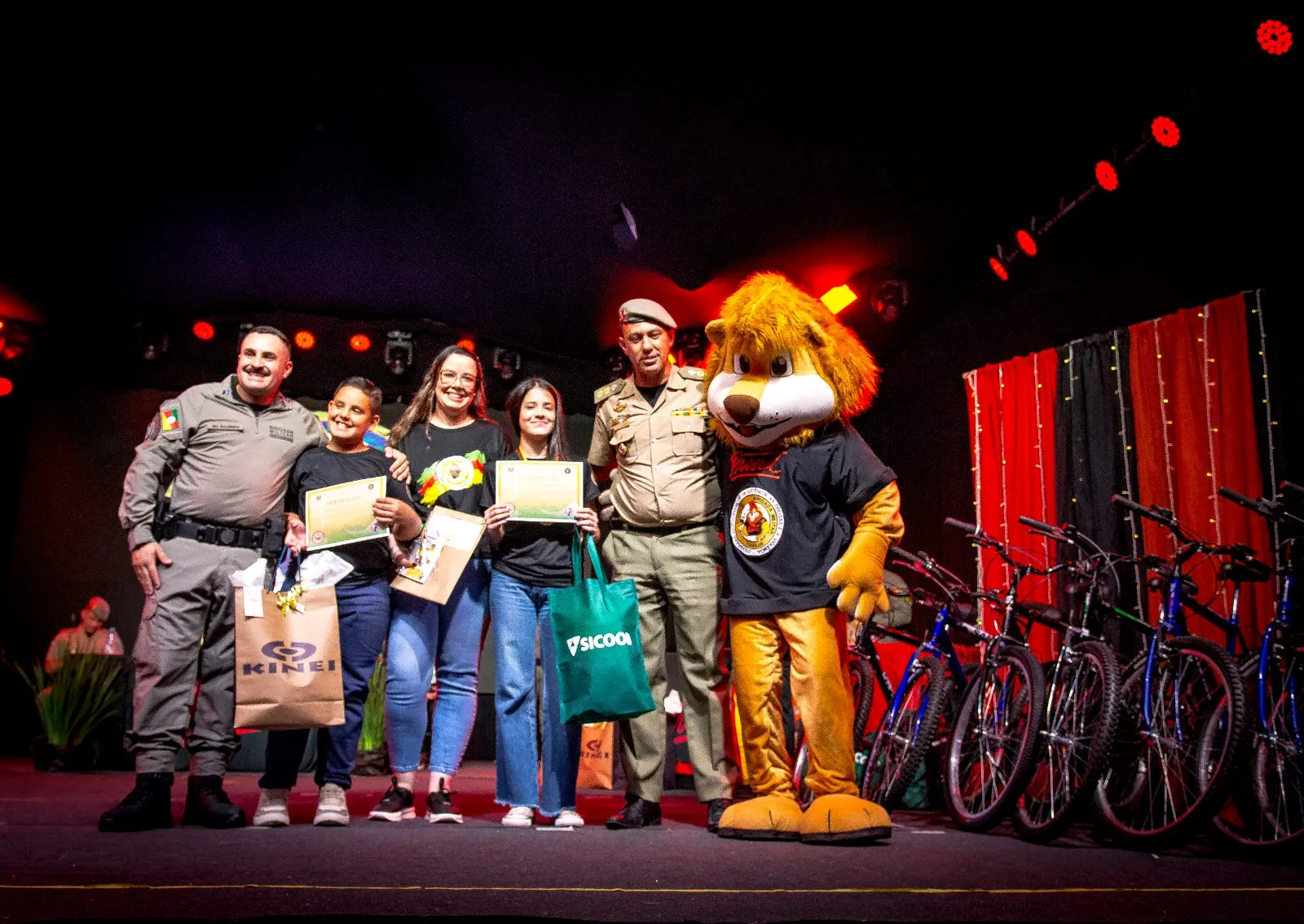 No segundo semestre, participaram 18 turmas do 5º ano, totalizando mais de 400 alunos das redes estadual, municipal e particular. E em novembro, 21 turmas do 3º ano, também concluíram o curso, totalizando 900 formandos em 2025. As atividades foram ministradas pelo Sargento Neves e pelo Soldado Razeira, da Brigada Militar.