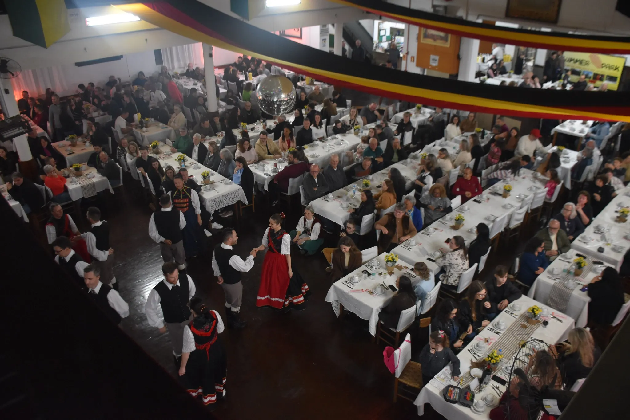 Na noite da última sexta-feira (25/07), Dois Irmãos vivenciou uma verdadeira viagem às origens da sua identidade cultural e gastronômica. Com ingressos esgotados, o Baumschneis Kolonial Kaffee reuniu mais de 300 pessoas na Sociedade Atiradores para uma noite marcada pela fartura do café colonial servido à mesa, apresentações folclóricas e muita música.