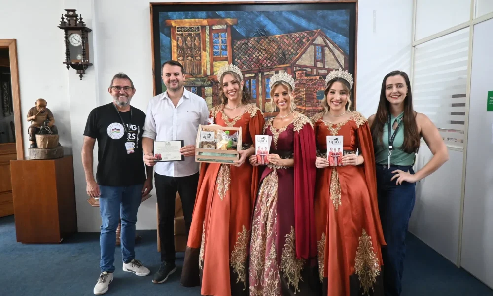 Representando o município anfitrião, participaram da visita o diretor de Turismo, Deonísio Schaefer, a rainha Raquel Beatriz Schafer, as princesas Julia Lais Follmer e Vitória Mari de Freitas Engeroff, e a assessora das soberanas Mariana Backes, que divulgaram as atrações da festa e reforçaram o convite para que a comunidade regional prestigie o evento.