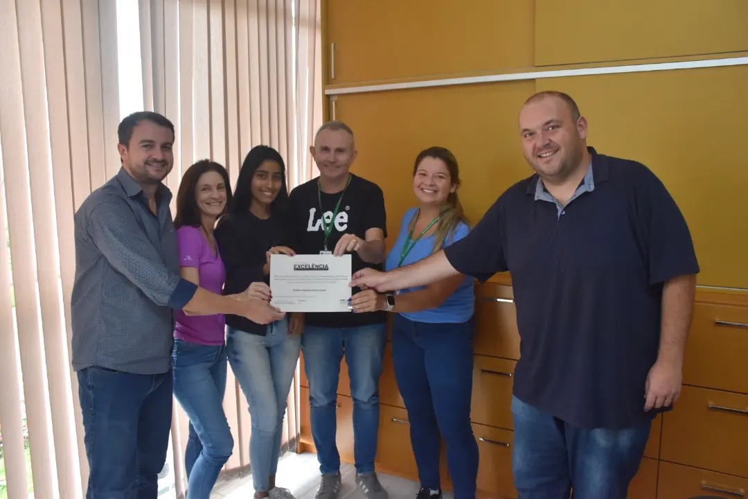 O prefeito Jerri Meneghetti visitou o setor de Compras e Licitações nesta quinta-feira (04) e entregou para os servidores do setor o Certificado de Excelência em Compras Públicas recebido em reconhecimento pelo comprometimento com a eficiência, eficácia, transparência e modernização das licitações e contratos administrativos firmados por Dois Irmãos em 2023.