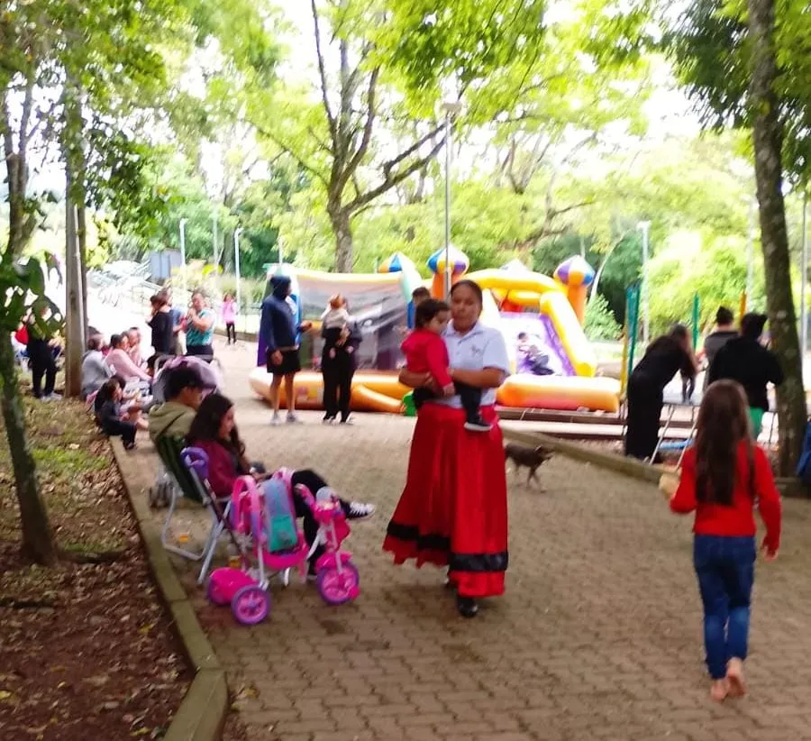 Picada Café – O domingo especial da criança 2025 ocorreu no fim de semana passado e reuniu mais de 90 crianças na área de lazer do Bairro Esperança. A tarde foi de diversão geral para os pequenos em homenagem ao Dia da Criança. Teve brinquedos infláveis, pula pula, além de muita descontração, alegria e outras brincadeiras. Promovido pela Igreja Quadrangular, vereadora Adriane Marconi Mielke e voluntários, a ação ocorreu pelo quinto ano seguido. Além de descontração com brinquedos a tarde teve ainda lanches, doces e refrigerante. “Só temos a presença de cada criança e aos adultos também. Esse dia só é possível porque há apoiadores e incentivadores”, frisou a vereadora. “Ver a alegria estampada no rosto de cada um nos motiva. E essa só é possível graças ao apoio de cada um e a legião de voluntários que ajudam a organizar e fazer a tarde de alegria”, acrescentou. Os organizadores agradecem a cada apoio e patrocinador e a todos os voluntários.