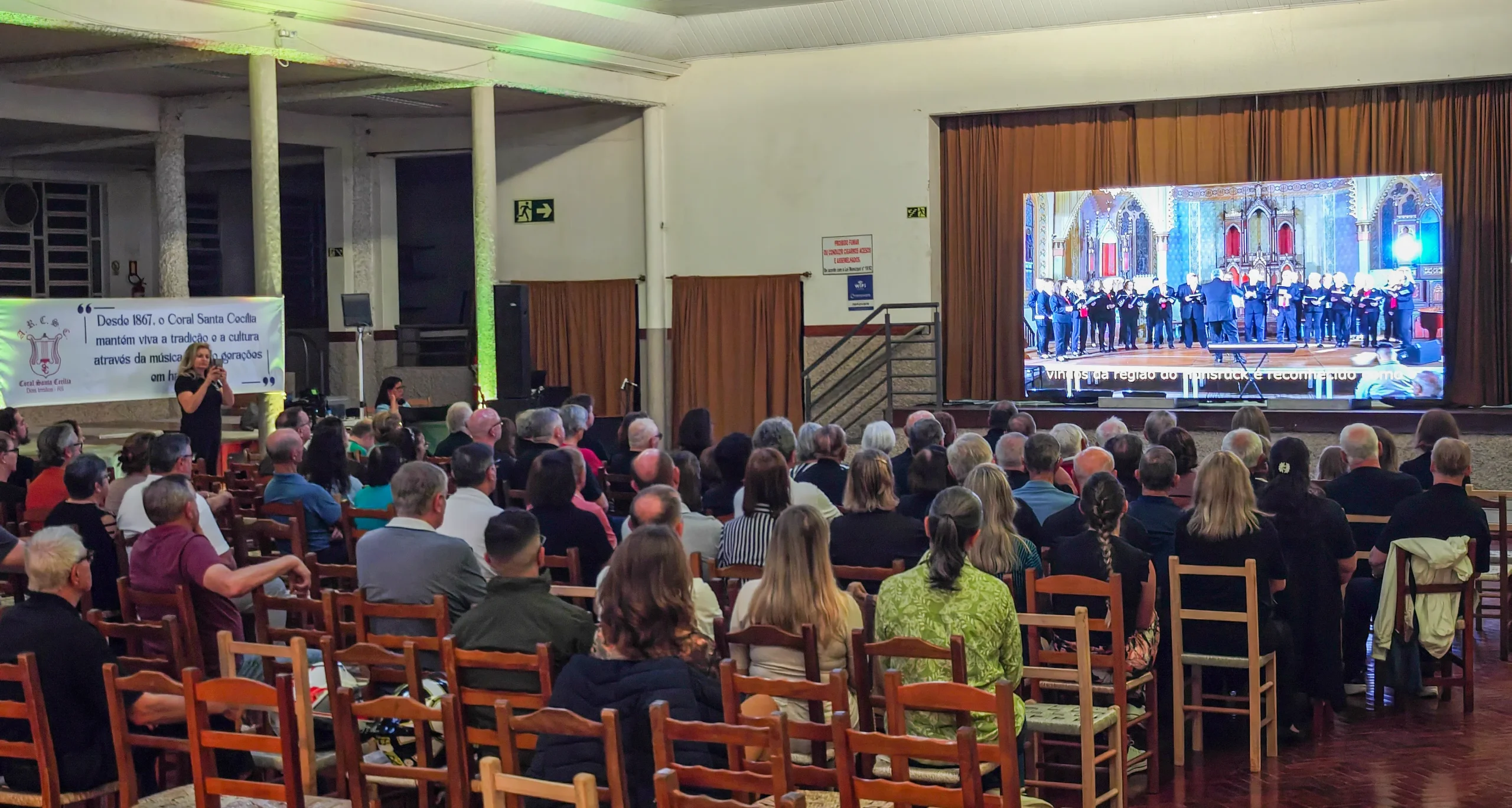O evento reuniu um público expressivo, composto por atuais integrantes do coral, ex-cantores, familiares e admiradores da trajetória do grupo. A atmosfera foi de profunda conexão e nostalgia, com muitos presentes se emocionando ao rever imagens, depoimentos e registros históricos que compõem o legado do Coral Santa Cecília — fundado em 1867, e reconhecido como um dos pilares culturais de Dois Irmãos.