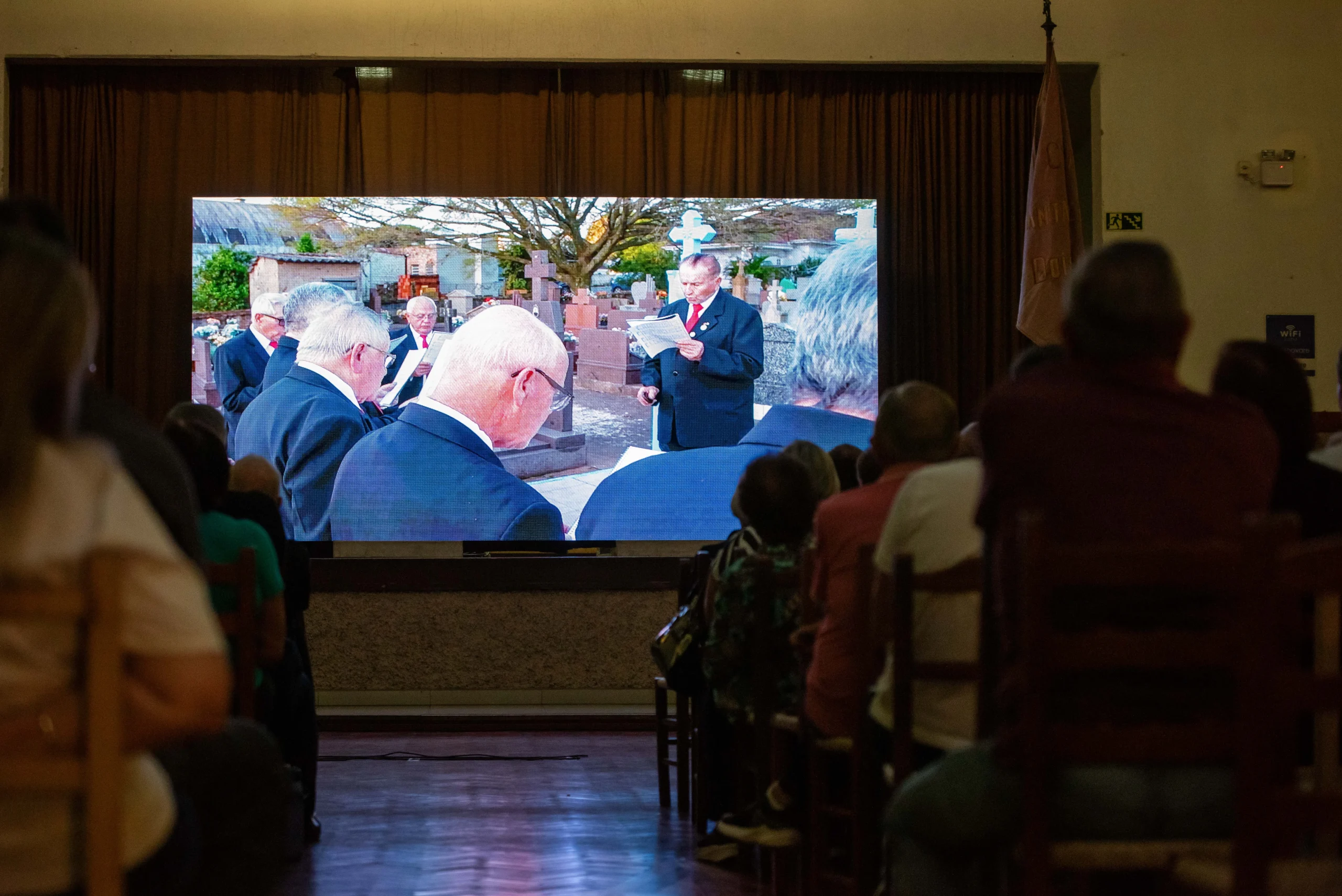 Dois Irmãos – Uma noite de emoção, reencontros e celebração da história musical da cidade marcou a exibição pública do documentário “Memórias e Histórias do Coral Santa Cecília”, realizada ontem no auditório da Sociedade Santa Cecília.