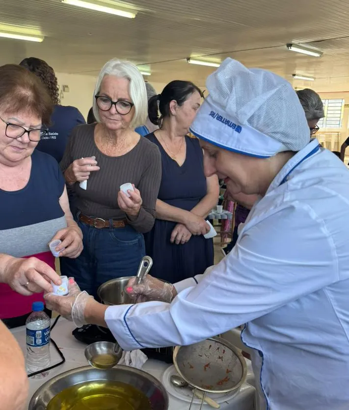 Como parte prática do encontro, Rogéria demonstrou o preparo artesanal de uma pomada de calêndula, exemplo de produção segura e natural. Ao final, os participantes receberam mudas de plantas medicinais para cultivar em casa, incentivando o cuidado com a saúde de forma sustentável.