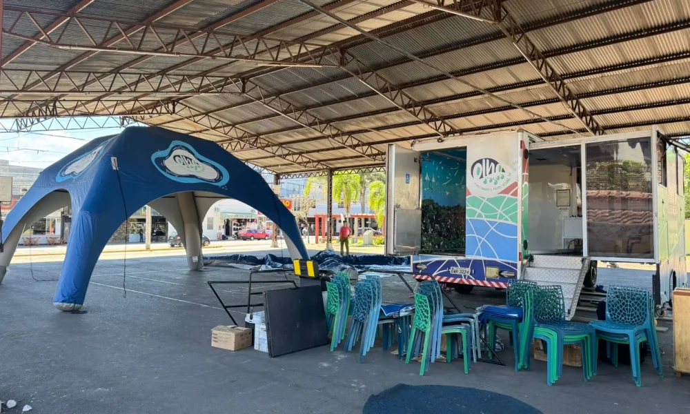 O projeto “Olho D’Água – Artes Líquidas e Águas Visuais” chega a Estância Velha entre os dias 24 e 27 de setembro, no PAC – Pavilhão de Atividades Culturais Ênio Trein, no Centro. A iniciativa, que já percorreu diferentes regiões do país, combina arte, tecnologia e educação ambiental para sensibilizar o público sobre a preservação da água.
