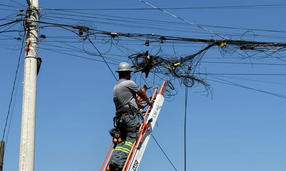 A Prefeitura de Estância Velha, por meio da Defesa Civil, retomou nesta quarta-feira (4) a Operação Poste Limpo, que visa a retirada de cabos inutilizados e a organização da fiação nos postes por empresas de telefonia e internet, conforme normas da RGE. A ação ocorre em mutirão e inclui o acompanhamento do descarte correto dos materiais.