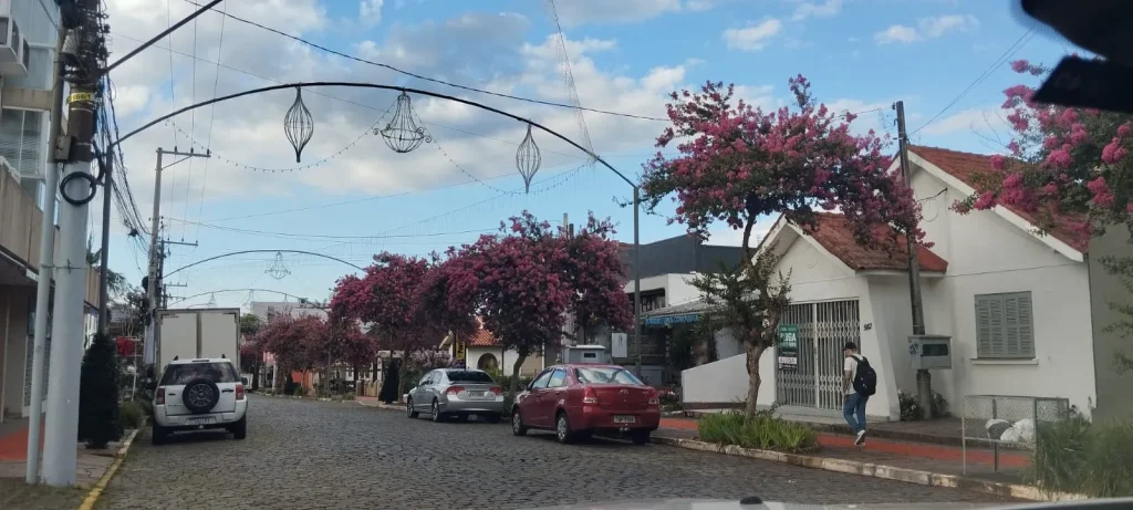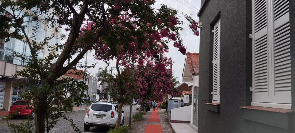 Dois Irmãos – O Centro está mais florido nesta época com as extremosas. Estas árvores plantadas ao longo da Av. São Miguel e outras ruas, deixou as vias com um colorido especial.
