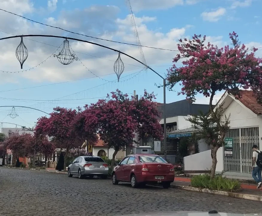 Dois Irmãos – O Centro está mais florido nesta época com as extremosas. Estas árvores plantadas ao longo da Av. São Miguel e outras ruas, deixou as vias com um colorido especial.