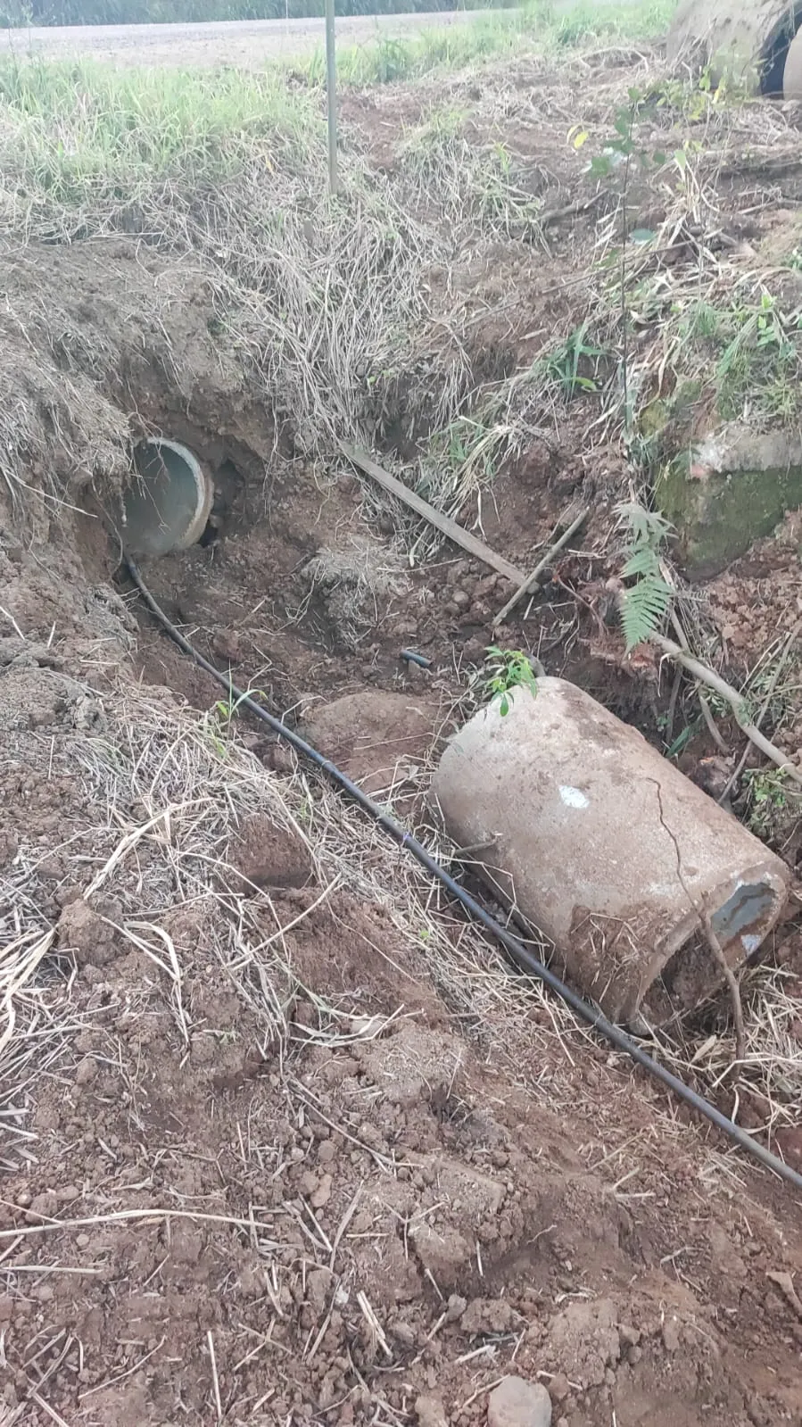 O ponto citado fica no Km 4 da estrada. Marcos também relatou que dois veículos já caíram em uma das valetas.