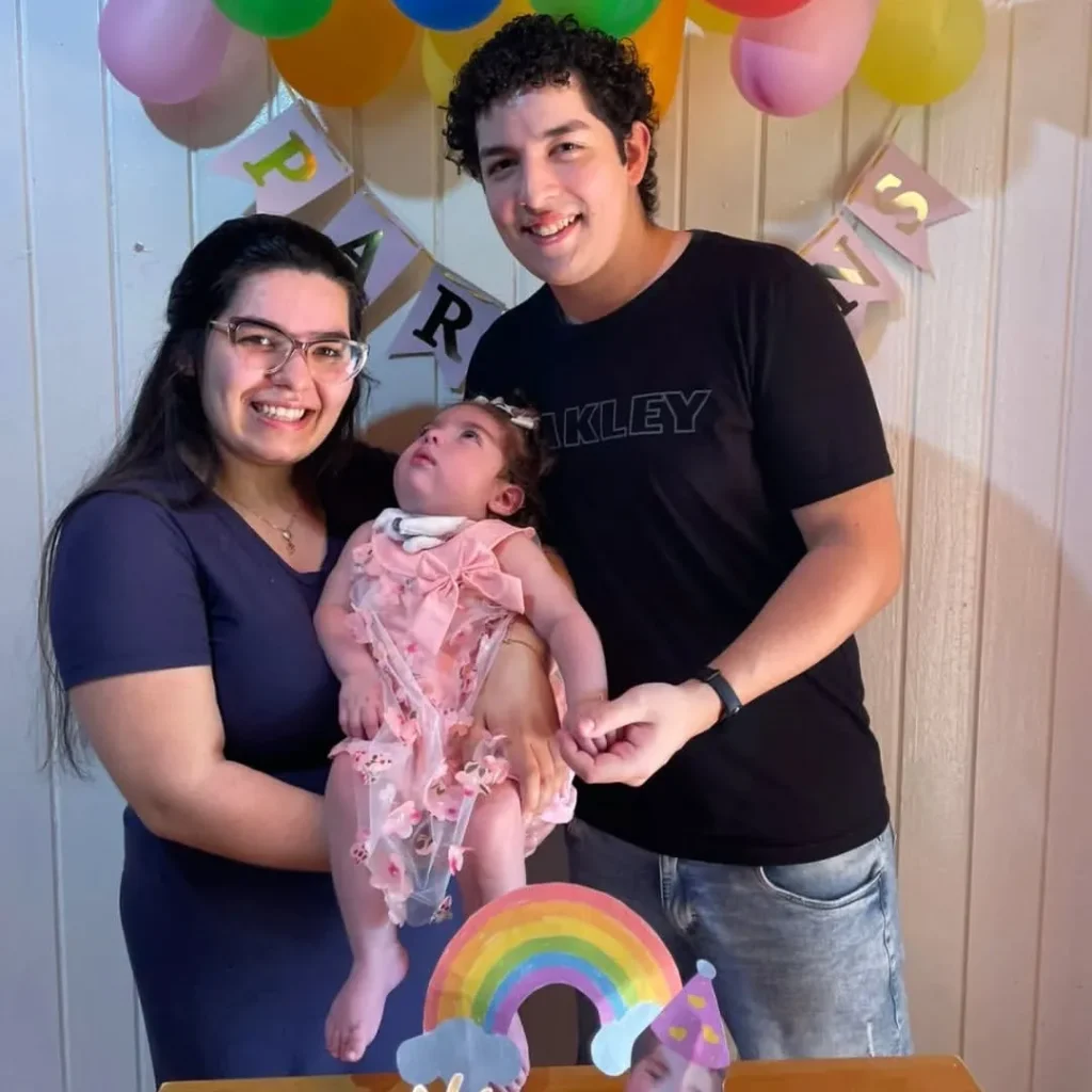 - Amália e os pais no aniversário de um ano