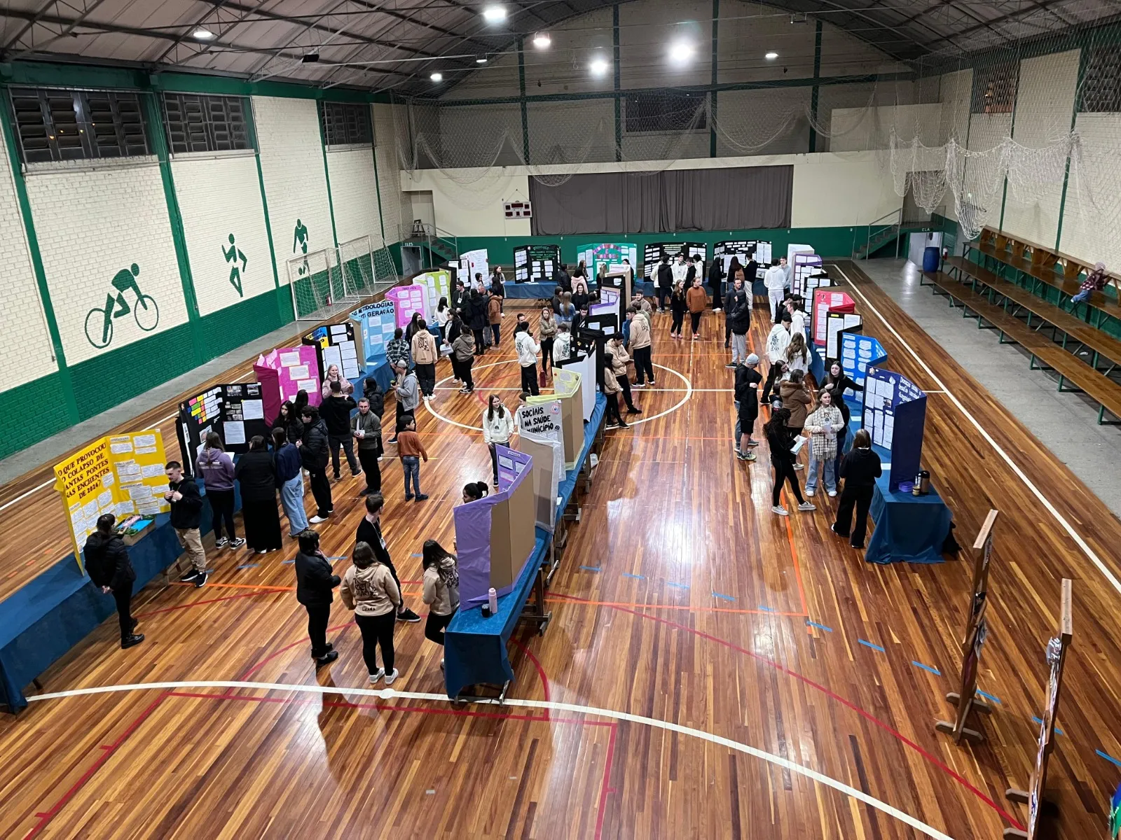 Picada Café – Em agosto, dia 14, a Escola Estadual Décio Martins Costa foi palco de mais uma edição da aguardada Feira do Conhecimento, evento que reuniu alunos, professores, familiares e membros da comunidade escolar em uma verdadeira celebração da educação, da criatividade e da troca de saberes. Durante a feira, os estudantes apresentaram projetos interdisciplinares desenvolvidos ao longo dos últimos meses. Os trabalhos foram expostos no ginásio da escola transformando o ambiente escolar em um espaço dinâmico de aprendizado e interação. Os projetos foram avaliados por uma comissão formada por professores da escola e convidados da comunidade, levando em conta critérios como criatividade, relevância, domínio do conteúdo e apresentação.