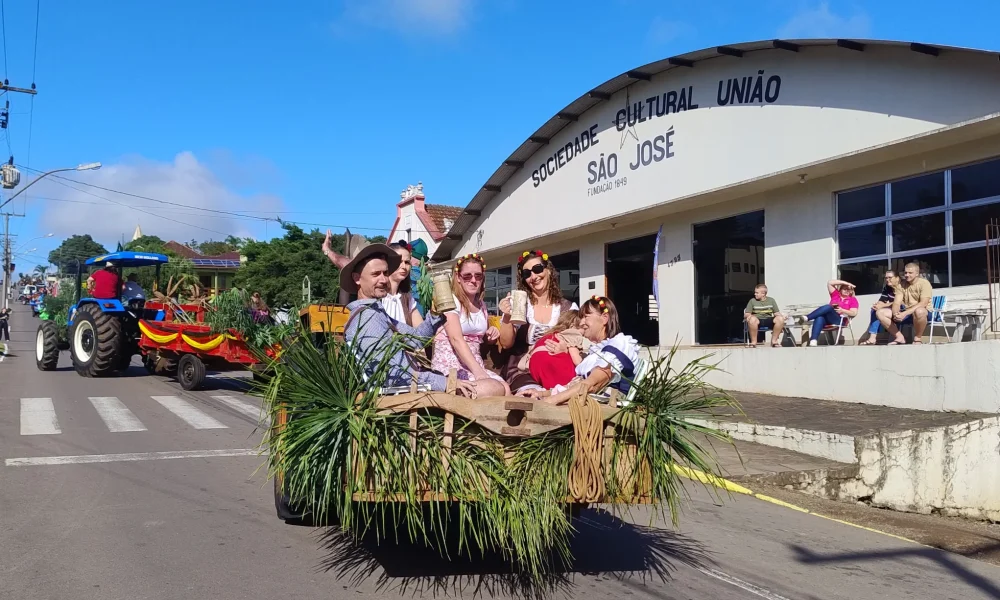 Na manhã de domingo, ocorreu o tradicional desfile temático. O evento contou com diversos veículos decorados, inspirados no tema “Raízes da nossa terra: sabores, tradição e cultura que brotam do chão”.
