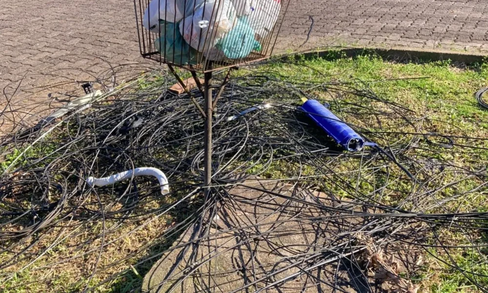 Moradores do bairro Boa Vista, em Lindolfo Collor, enfrentaram transtornos causados por fios de telefonia e internet deixados na calçada no cruzamento entre as ruas 26 de Março e Sete de Setembro. A situação se arrastou desde a última semana, após um acidente com um ônibus ocorrido na quarta-feira, dia 2 de julho.