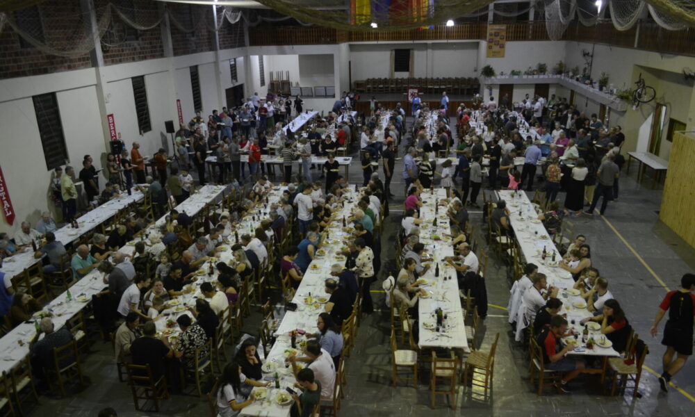 Nova Petrópolis – A 1ª Galinhada do Bergtal foi um sucesso e superou as expectativas do grupo de danças de São José do Caí. O evento aconteceu na chuvosa noite de sábado (27) na sociedade Lyra e reuniu centenas de pessoas. Todos os ingressos foram vendidos antecipados e houve participação de pessoas de diversas localidades do município e cidades visitantes. “Os eventos que o grupo promove são reconhecidos pela qualidade e pelo gostinho caseiro”, conta a integrante Ana Paula Backes. O grupo já tem data para seu outro evento, o tradicional Café & Folclore que chega a nona edição em 2024. O evento está marcado para o dia 6 de julho.