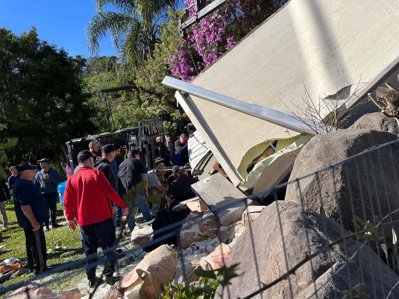 Um caminhão invadiu a residência que fica na curva, logo na chegada à cidade, mas ainda não há informações oficiais sobre vítimas.