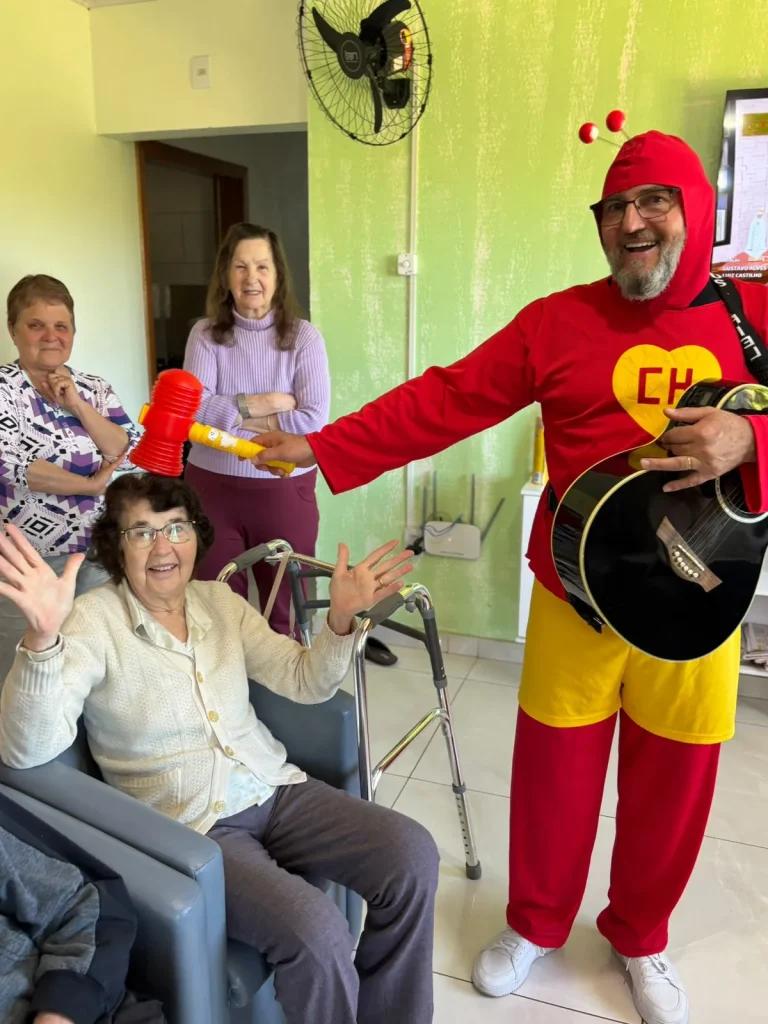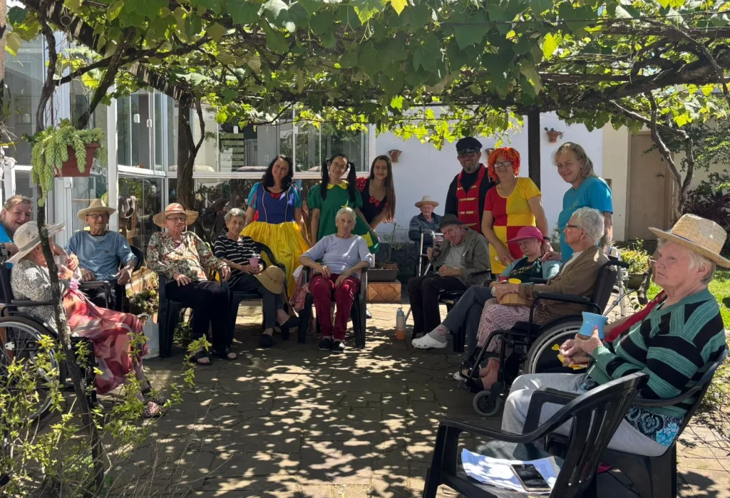 Além das visitas domiciliares, o grupo também levou sua energia contagiante aos lares de idosos Amor à Vida, em São Sebastião do Caí, e Wohnzentrum für Senioren, em Presidente Lucena.