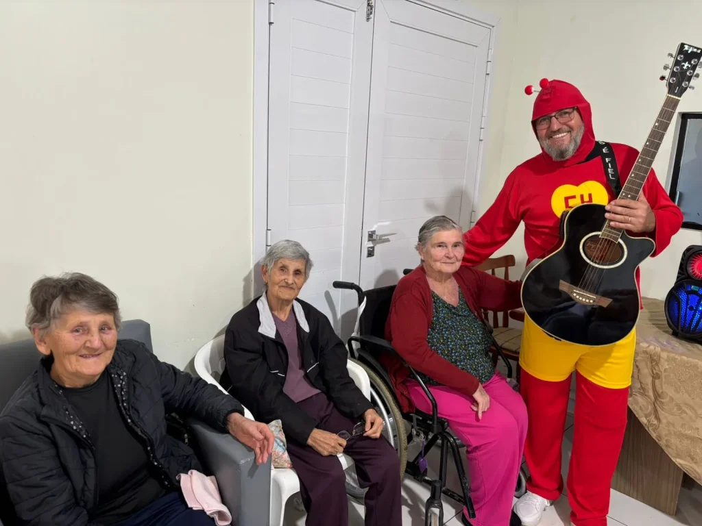 Todas as quartas-feiras, o grupo realiza visitas pelo município, levando música, boas conversas e alegria a cada residência visitada. Neste mês de outubro, em comemoração ao Mês das Crianças, os integrantes decidiram deixar as visitas ainda mais especiais, fantasiando-se de personagens infantis e espalhando cores, sorrisos e lembranças da infância por onde passaram.