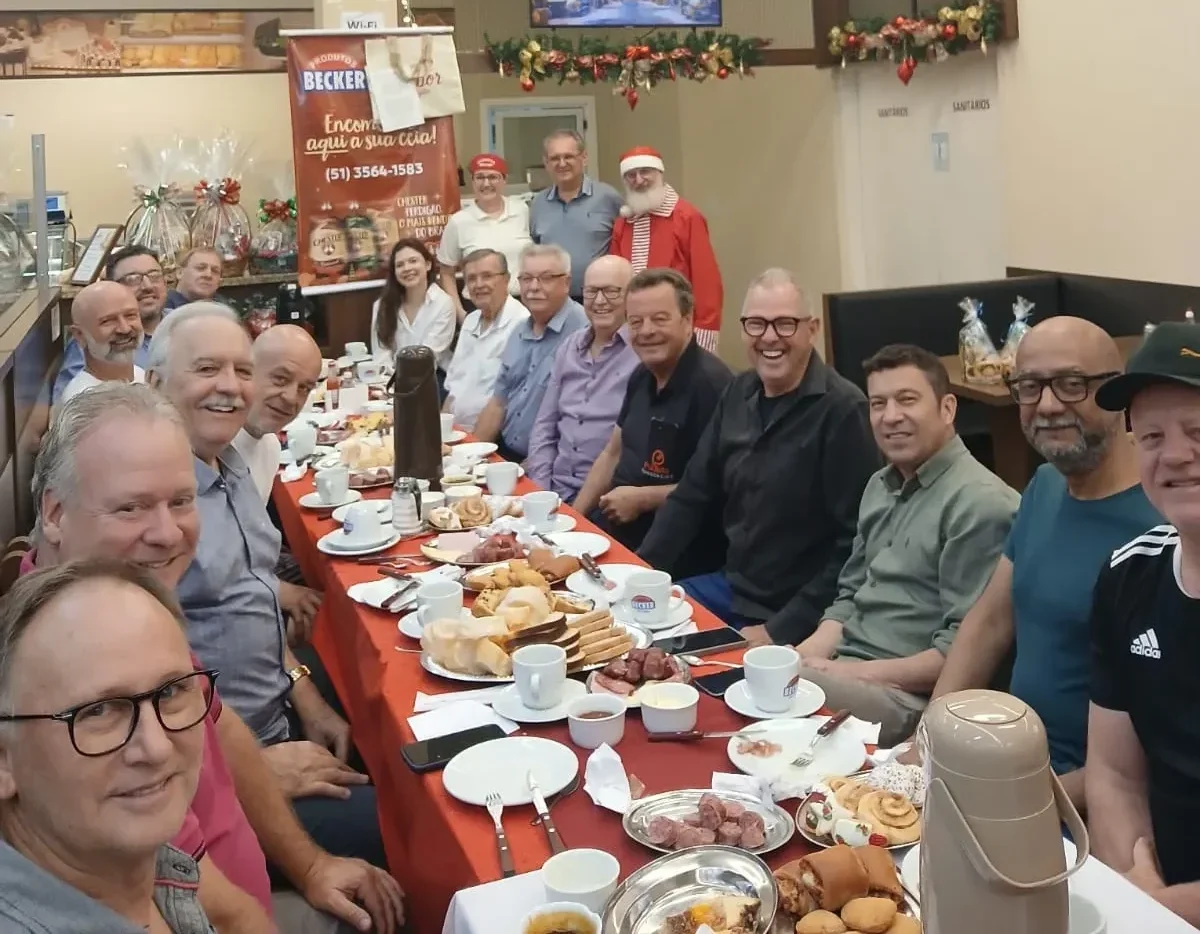 Na última terça-feira, o momento ganhou um brilho especial com a chegada do Papai Noel, surpresa organizada pela própria Padaria Becker. A presença do bom velhinho trouxe ainda mais clima natalino ao encontro, proporcionando descontração, alegria e registros fotográficos que marcaram a manhã dos participantes.