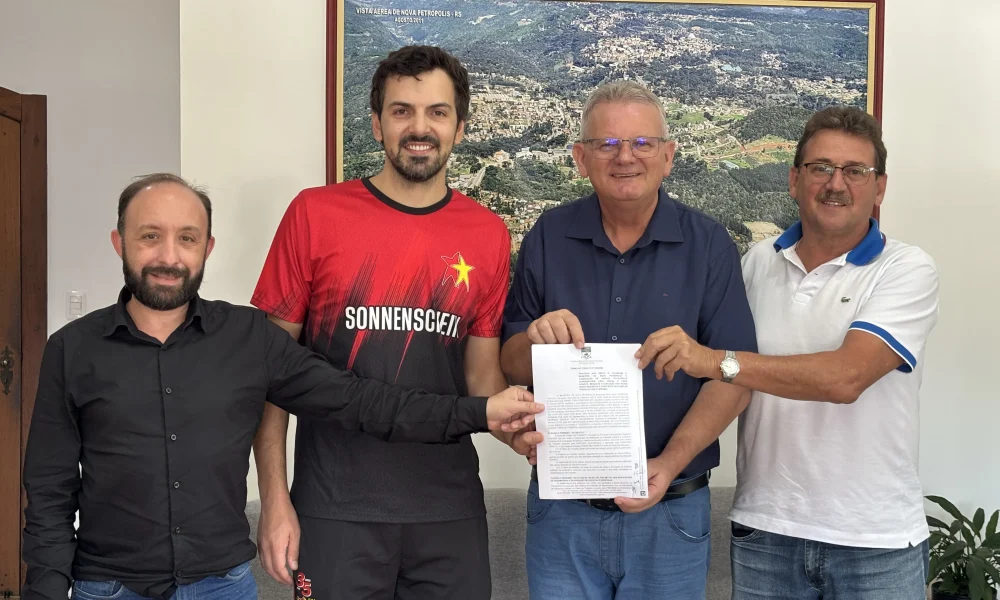 O prefeito Daniel Carlos Michaelsen assinou, na tarde de quarta-feira, 1º de abril, o repasse de R$ 10.000,00 para a Associação de Danças Folclóricas Sonnenschein, das localidades de Linha Brasil e Linha Araripe. O ato, realizado no Gabinete Oficial com a presença do presidente da entidade, Henrique Seefeld, formaliza a entrega do recurso destinado por meio de emenda impositiva do vereador Jorge Luiz Lüdke.