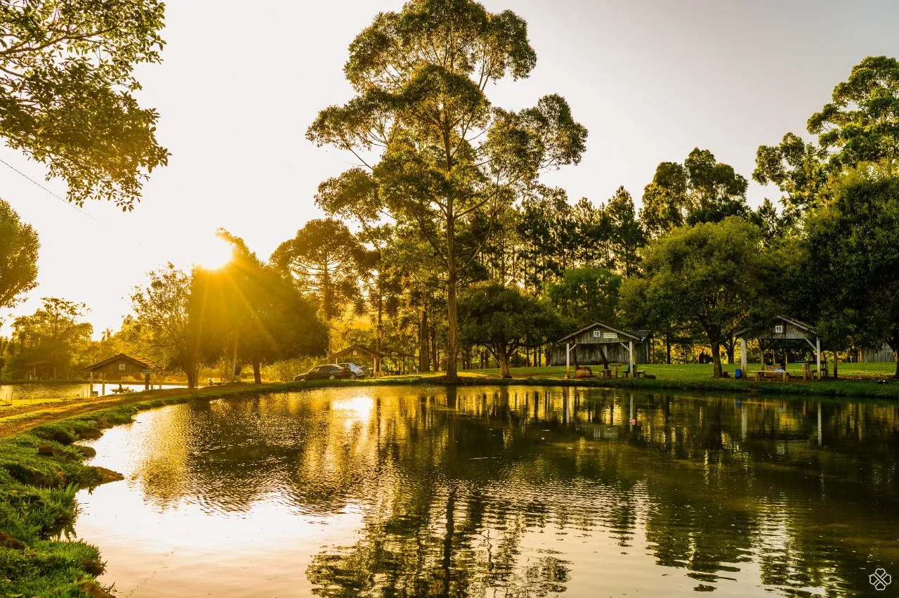 O local também conta com opções de pesque e pague e pesca esportiva, proporcionando uma experiência completa para quem aprecia o lazer rural.