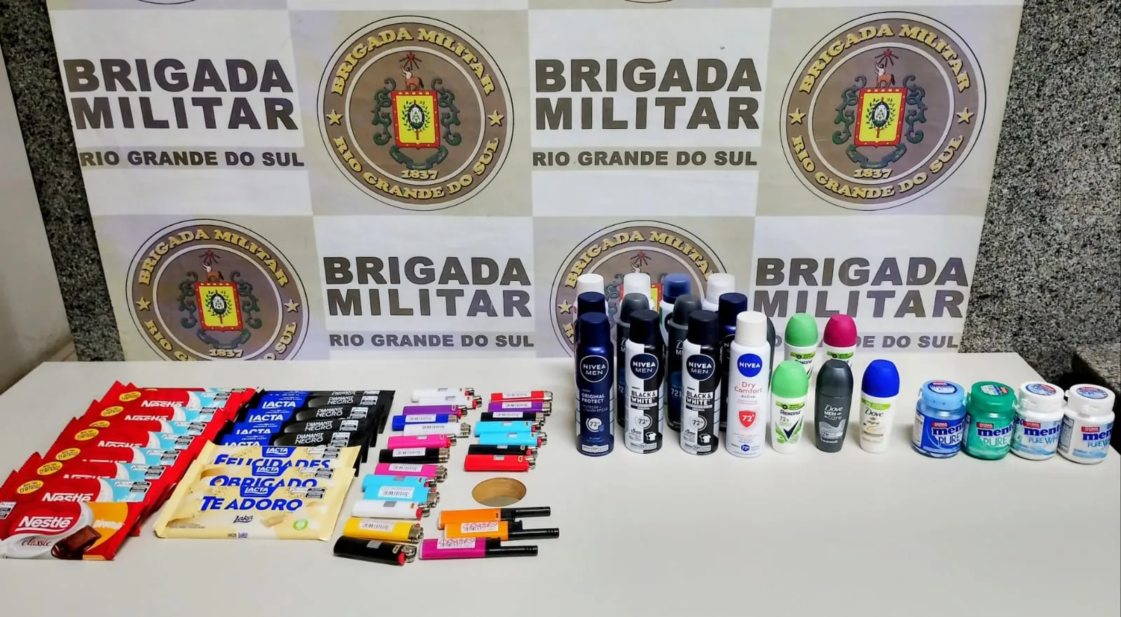 De acordo com a Brigada Militar, o detido acumula 44 registros policiais — entre eles, furto qualificado, furto simples em residência, furto/arrombamento de estabelecimento comercial, furto em veículo, furto mão grande, roubo a motorista, receptação, lesão corporal, ameaça, posse de entorpecentes, dano qualificado ao patrimônio público, desobediência e vias de fato. A extensa ficha criminal reforçou a autuação em flagrante por furto qualificado nesta ocorrência.