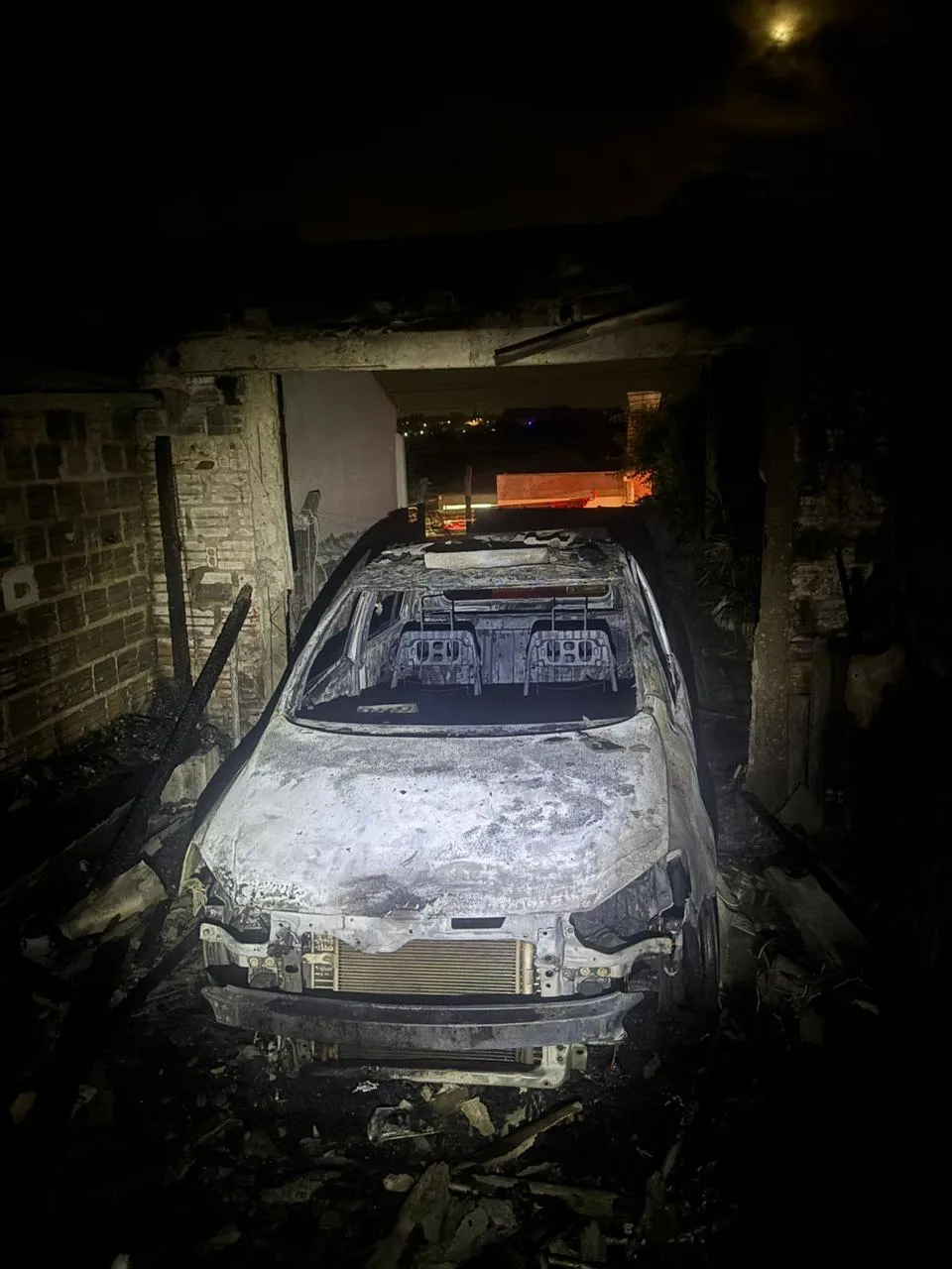 O homem passou a gritar com os agentes, ordenando que disparassem contra ele e afirmando que ninguém sairia vivo da ocorrência. Em seguida, derramou gasolina sobre o automóvel da família e ateou fogo. As chamas se alastraram rapidamente e começaram a atingir a residência.