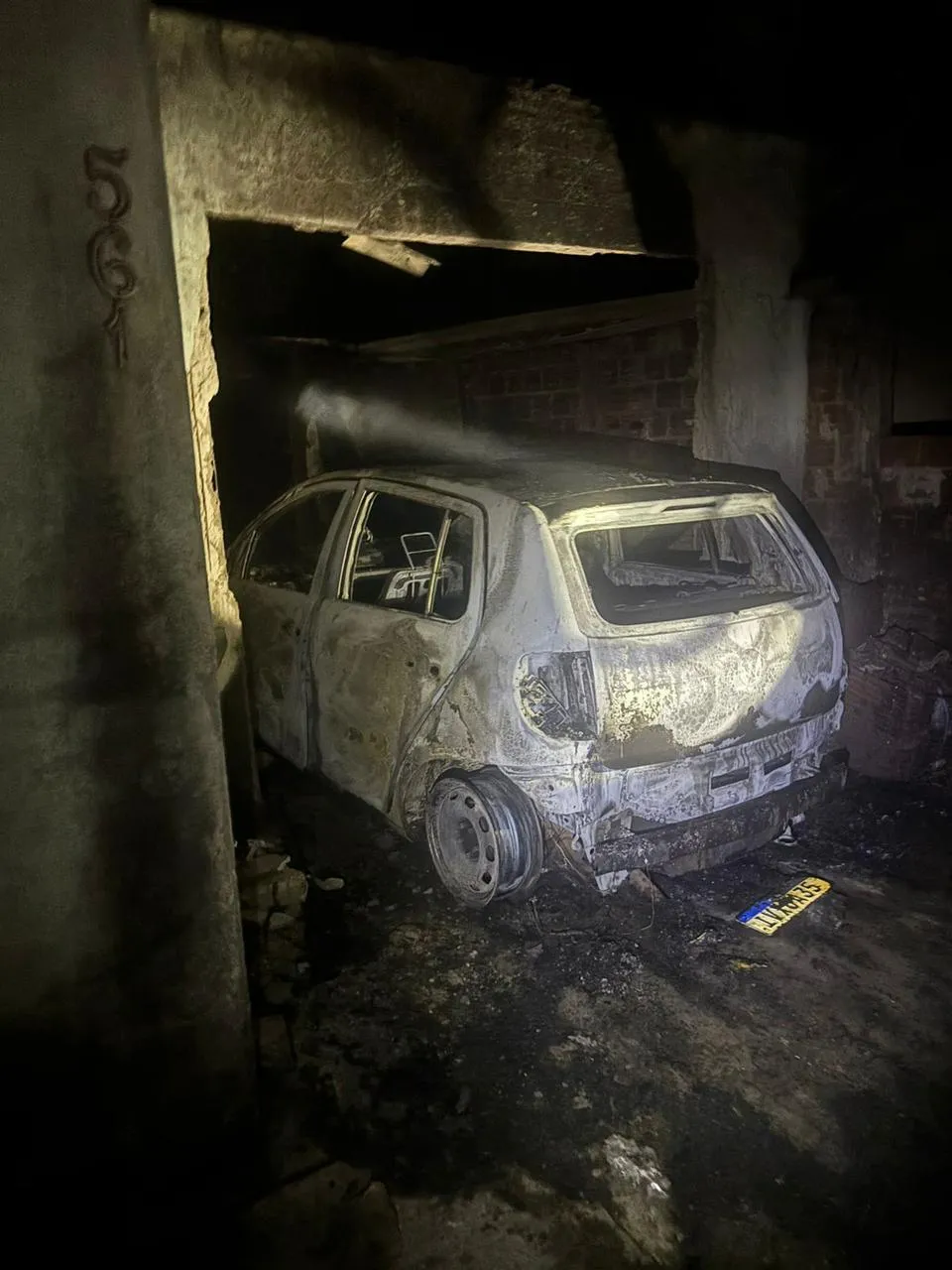 Homem em surto, ateia fogo no carro da família em ocorrência de violência doméstica em Estância Velha